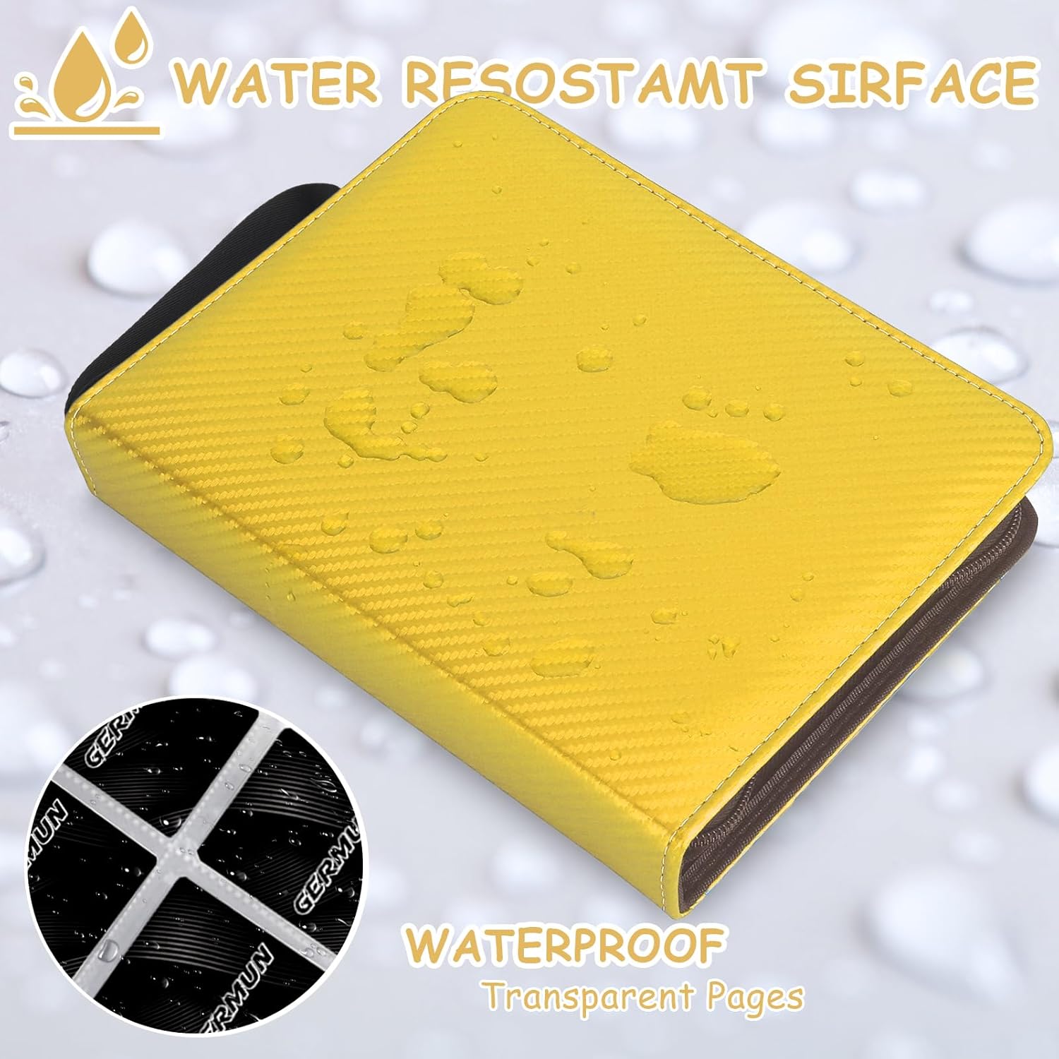 4 Pocket Card Binder, Premium Zip Trading Card Binder, 400 Double Sided Pocket PU Card Collection Binder, Collector Card Album, Card Folder for MTG, TCG, Sports Cards, Game Cards (Yellow)