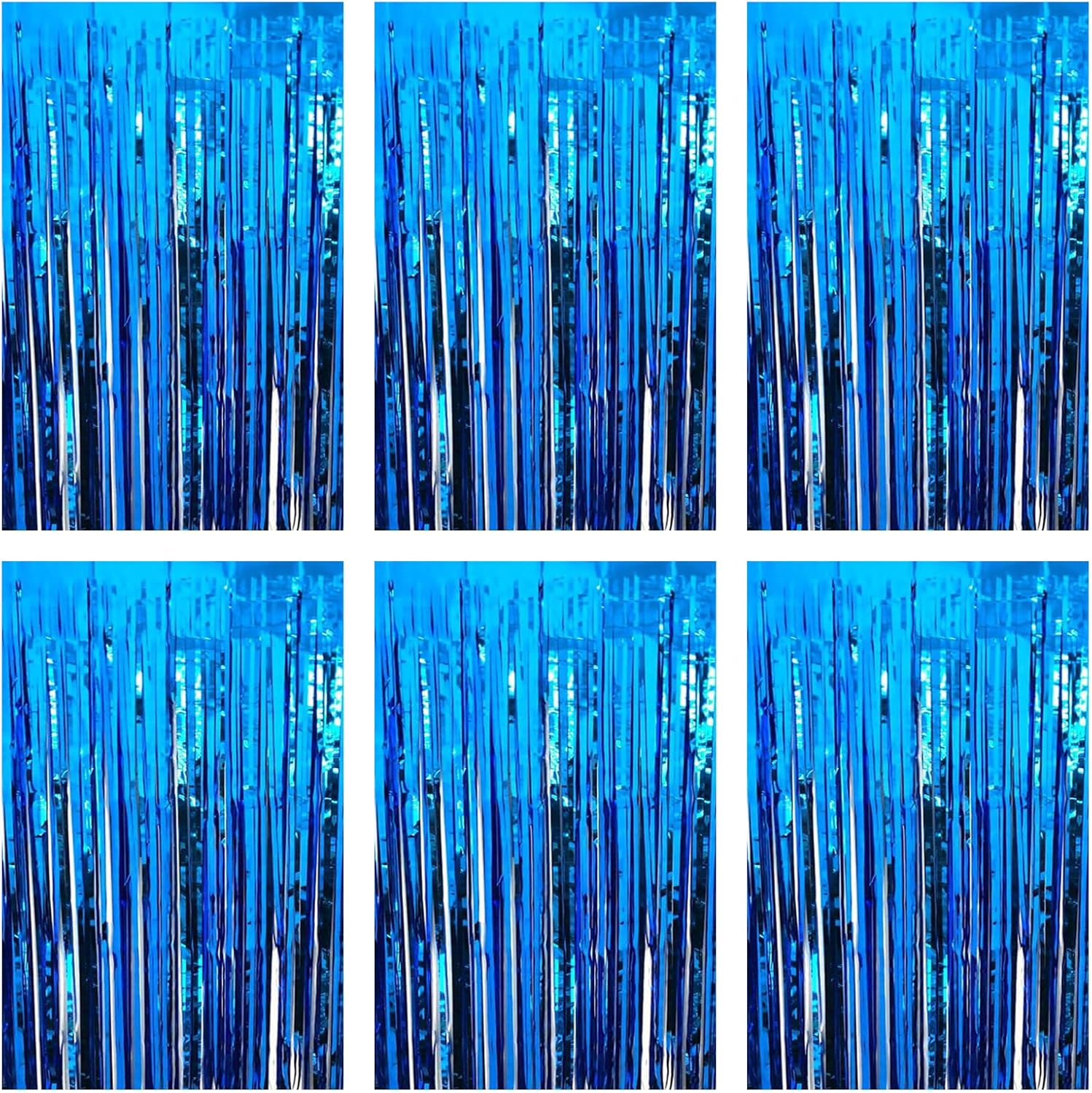 Blue Foil Fringe Curtain 3.3×8.3FT 6 Packs, Metallic Tinsel Curtains Party Streamers for Birthday Graduation Baby Shower Decoration (6pcs,3.3FT×8.3FT, Blue)