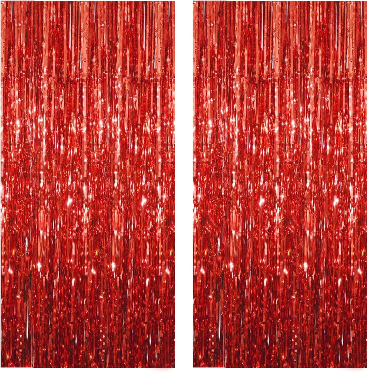 Red Foil Fringe Curtain 3.3×8.3FT 2 Packs, Metallic Tinsel Curtains Party Streamers for Birthday Graduation Baby Shower Decoration (2pcs,3.3FT×8.3FT, Red)