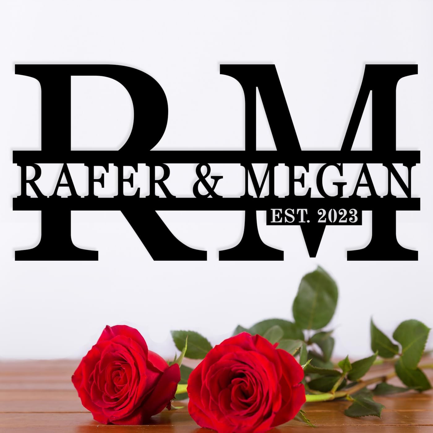 TNATUR Personalized Metal Sign - Custom Last Name Monogram - Split Letter - Family Door Hanger - Outdoor Wedding Gift - 12inch x 5.78inch Steel Sign