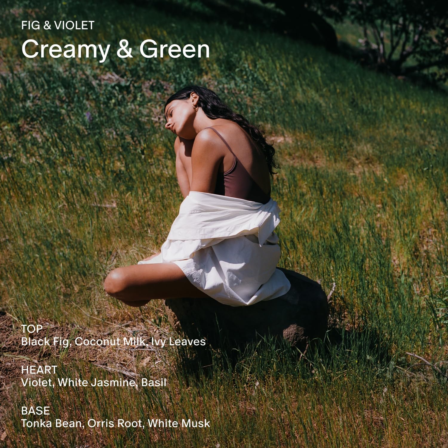 - Scent Notes — Top: Black Fig, Coconut Milk, Ivy Leaves. Heart: Violet, White Jasmine, Basil. Base: Tonka Bean, Orris Root, White Musk.