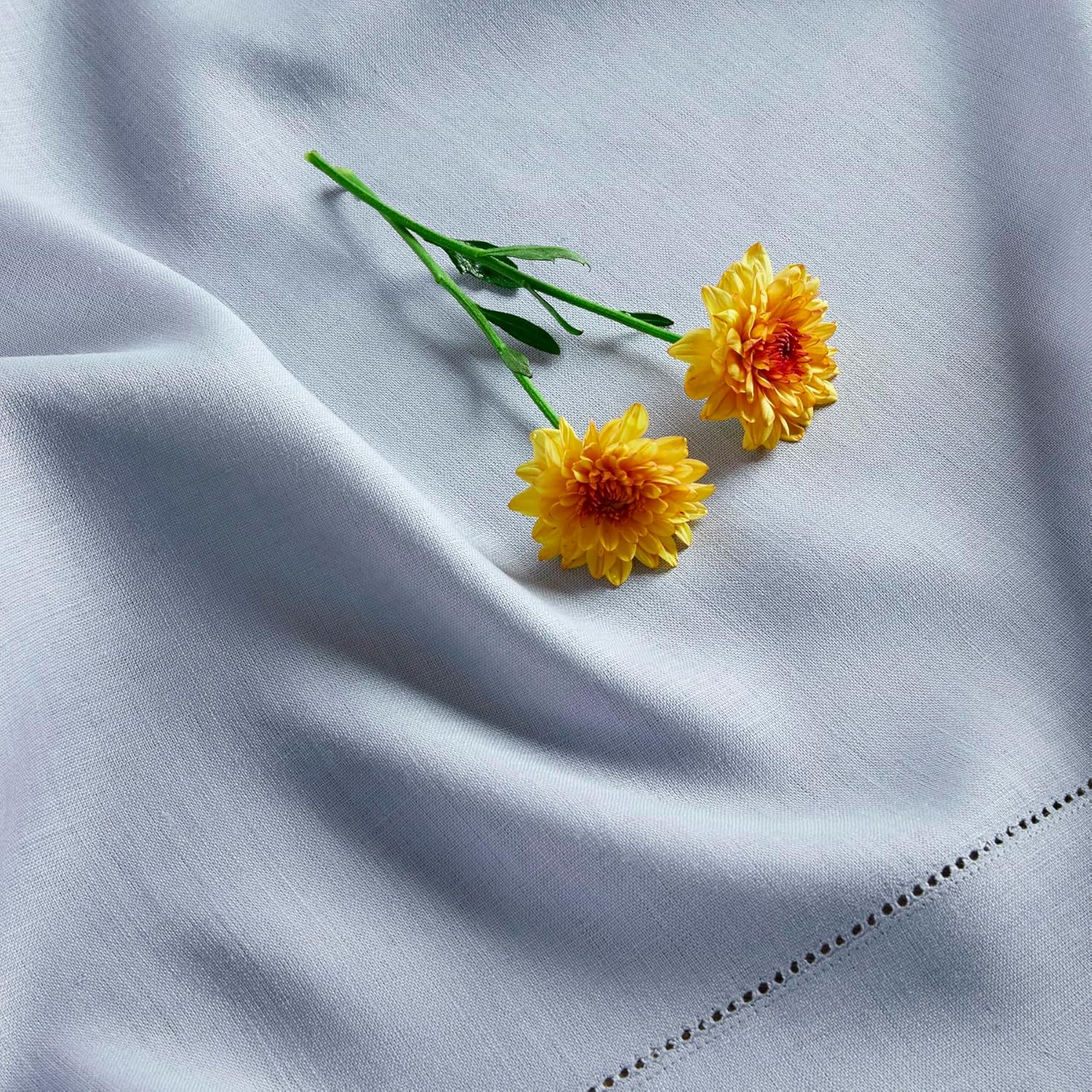 Solino Home Dusty Blue Linen Tablecloth 60 x 108 Inch - 100% Pure Linen Hemstitch Table Cloth for Rectangle Tables - Classic Hemstitch, Machine Washable Tablecloth for Fall, Autumn, Thanksgiving