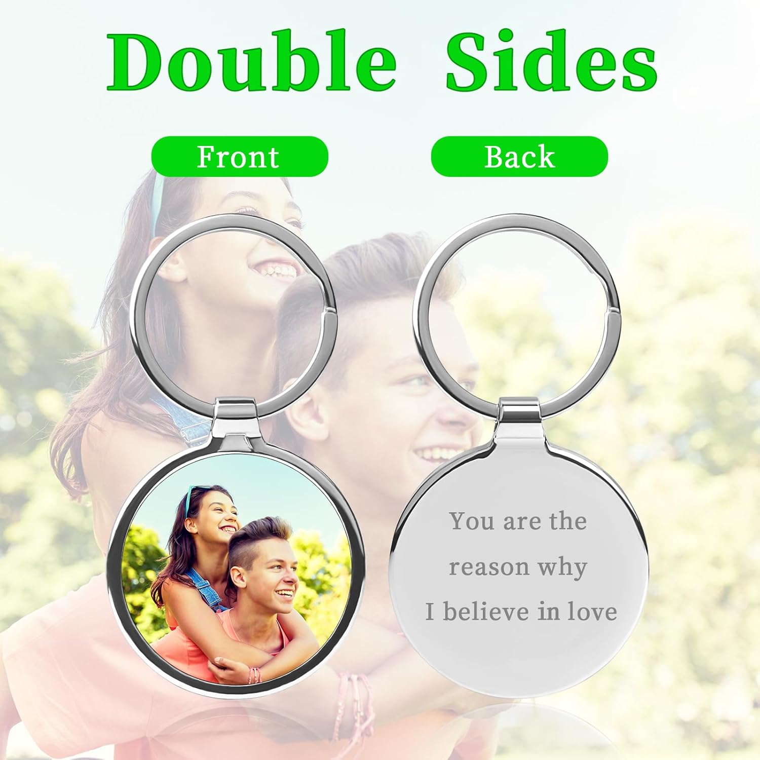 - Fashionable Personalized Keychain Gift for Men: Made from top-grade stainless steel, this father's day keychain is resistant to rust and deformation. The front photo uses thermal transfer for long-lasting color vibrancy. Laser-printed rear text ensures clear and profound wording. It's a lasting and delightful keychain gift for your loved ones