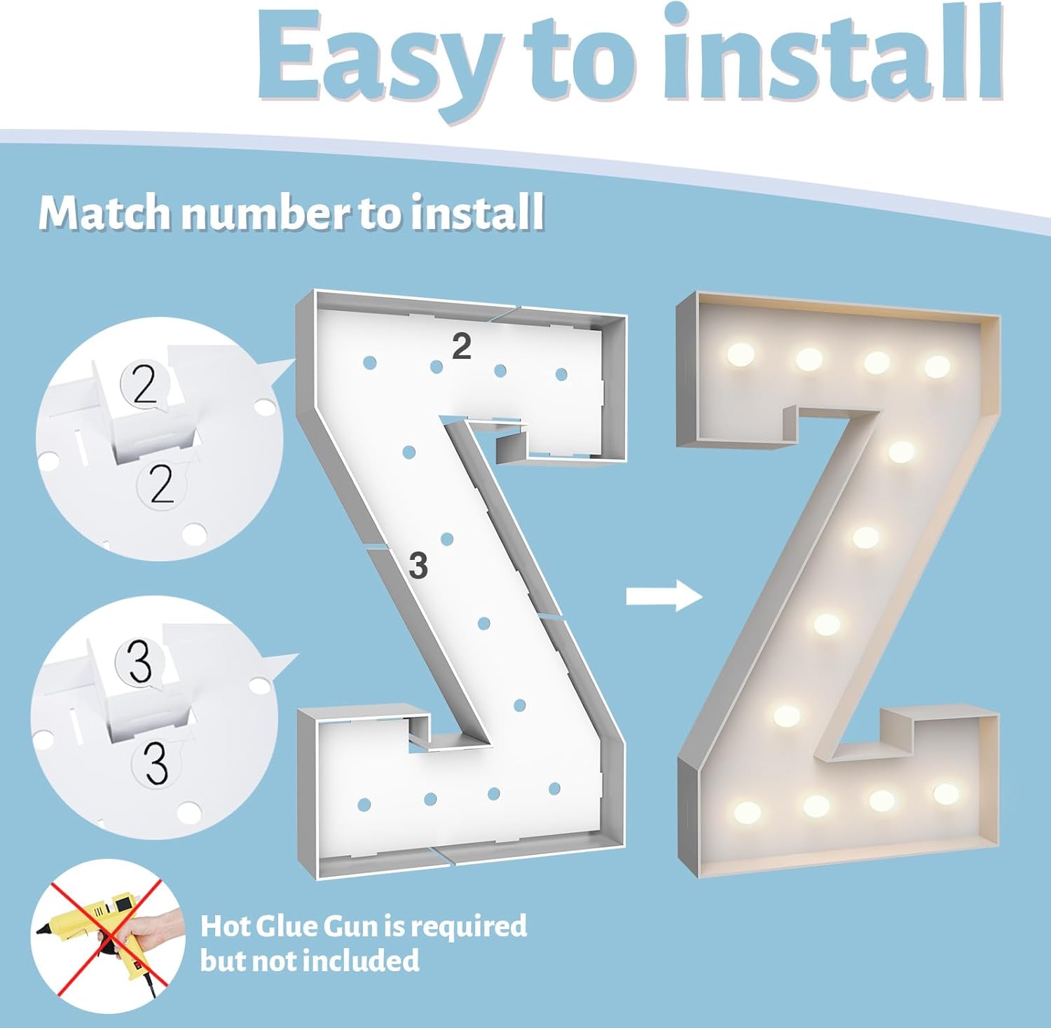 4FT Marquee Light Up Letters Z,Party Decoration Large Marquee Light Up Letters with Weighted Water Bag,Pre-cut Foam Board Set Can Be Used for Birthdays,Weddings,Baby Anniversaries