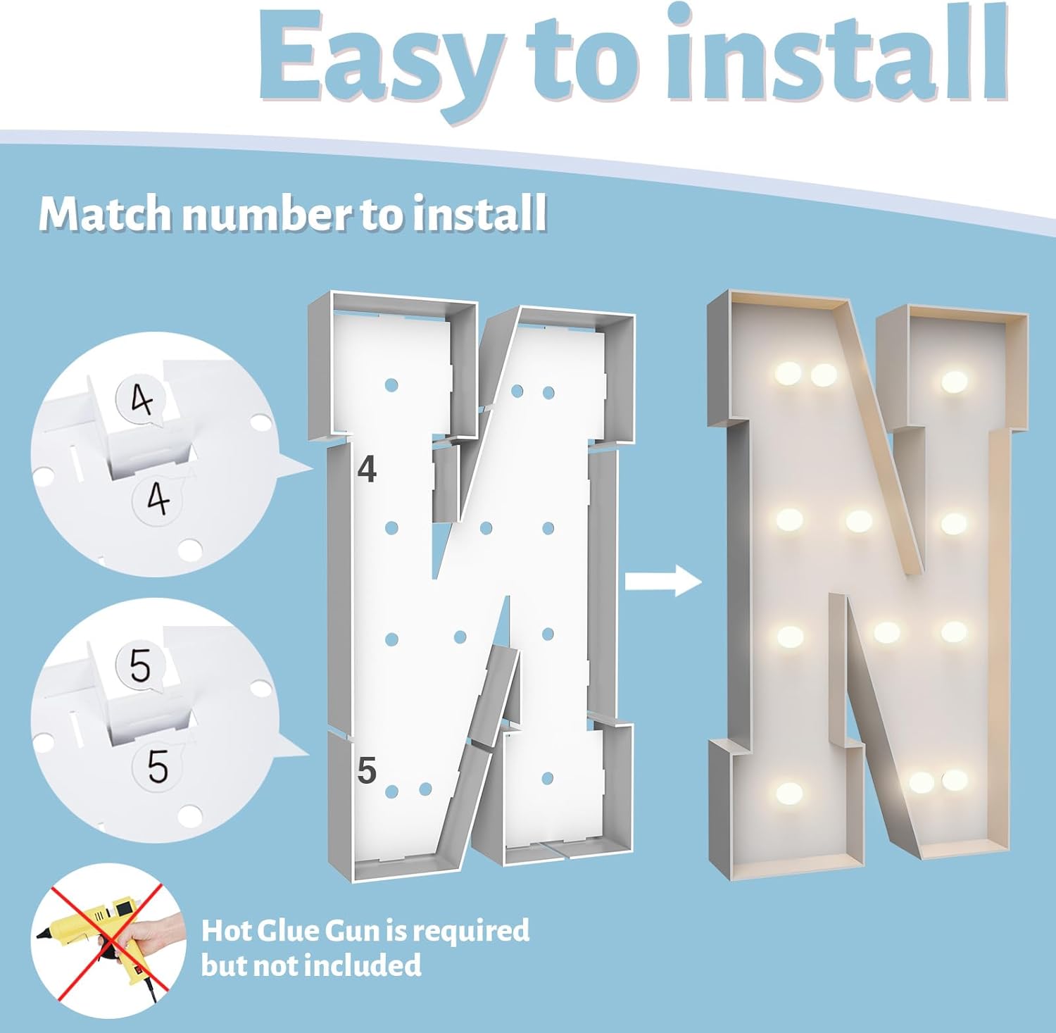 - ASSEMBLY REQUIRED: The marquee numbers need to be assembly with hot glue gun(not included in the package) Assemble it in advance will make your party amazing and fantastic