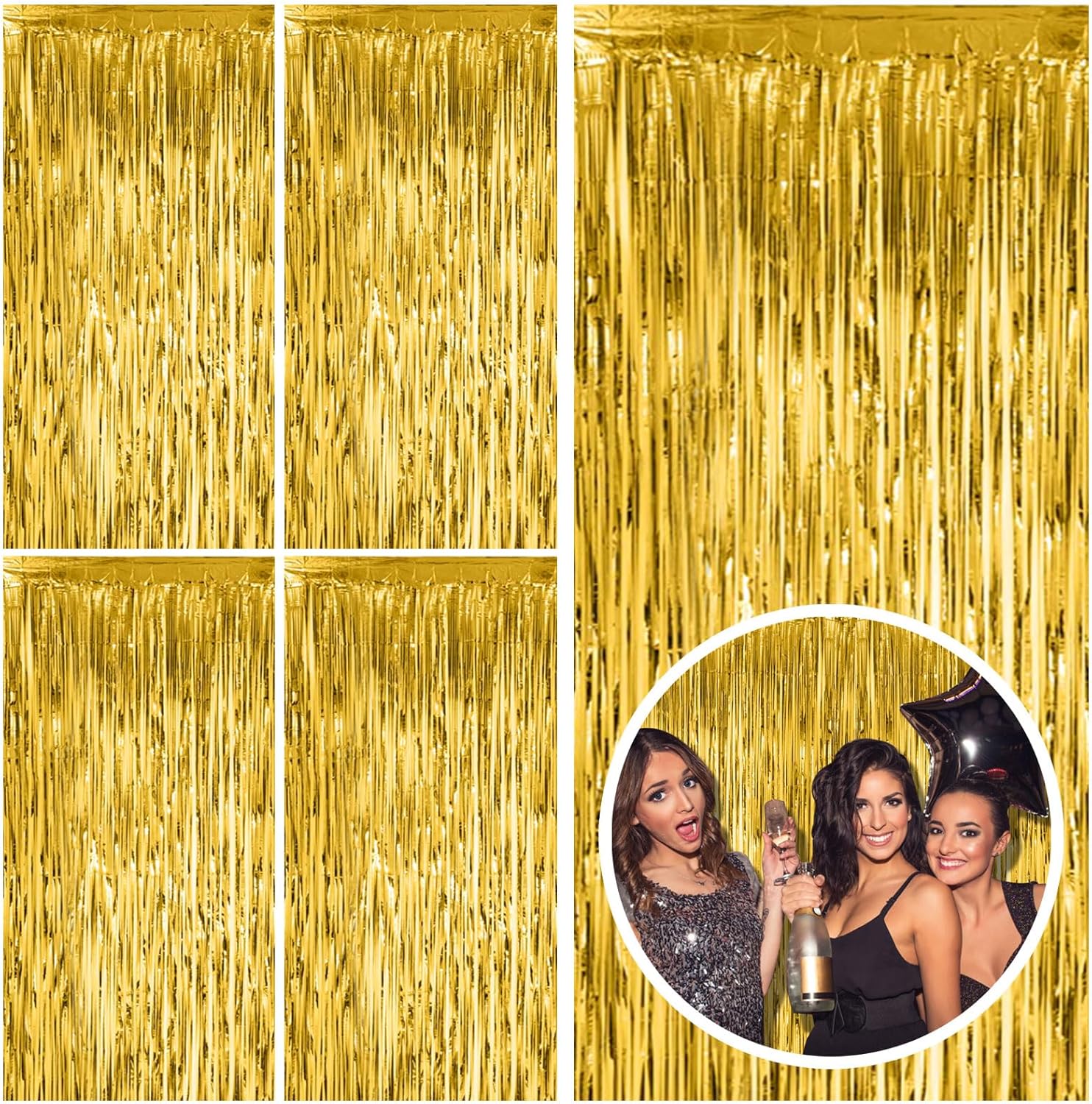 5 Pack Gold Fringe Curtain Backdrop Tinsel Streamers Birthday Party Decorations Christmas Photo Booth Backdrop Halloween New Year Graduation Baby Shower Theme Party Decorations