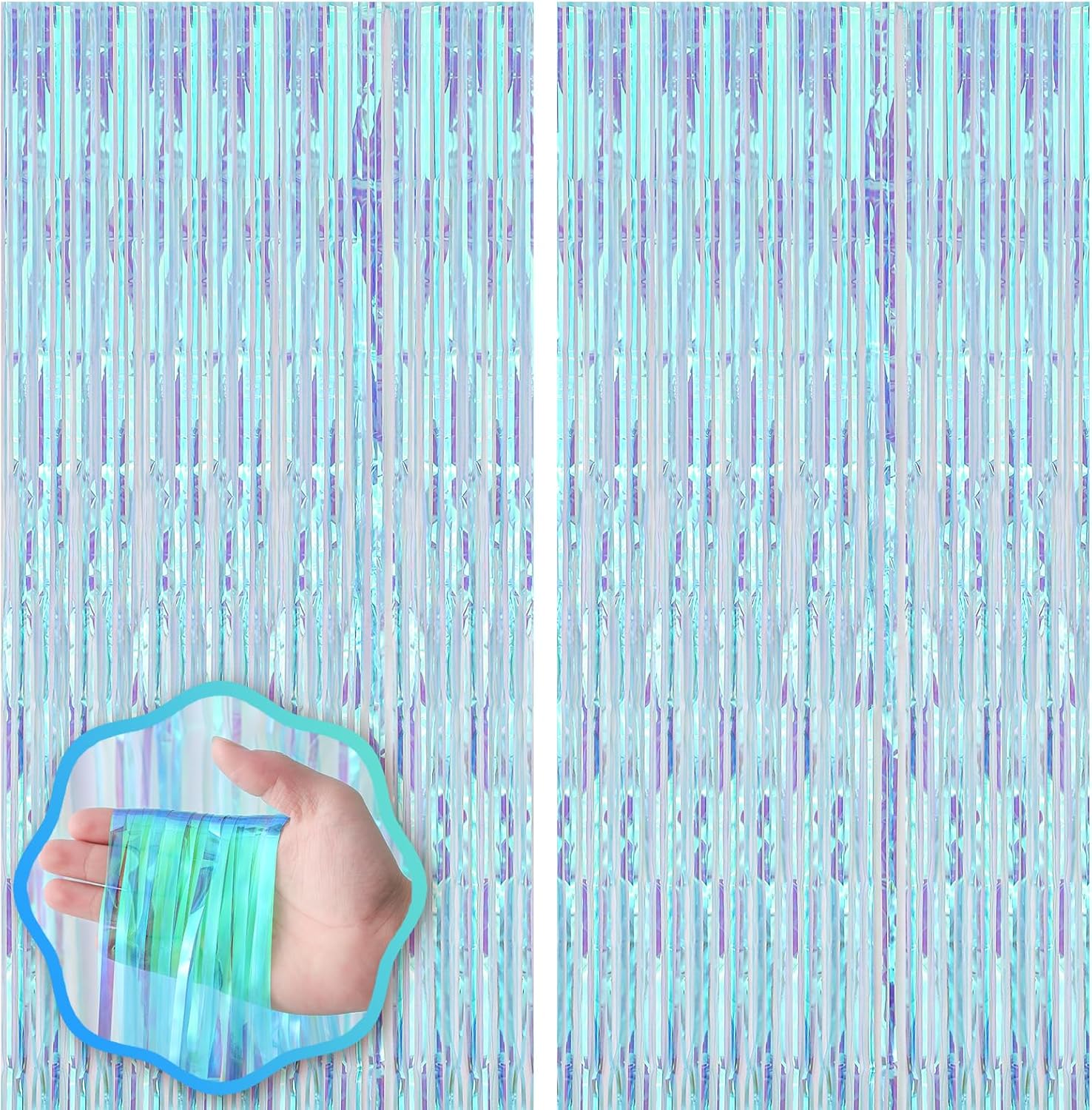 2 Pack 3.3x8.2 Feet Neon Iridescent Foil Fringe Backdrop Curtains, Tinsel Streamers Birthday Party Decorations, Fringe Backdrop for Graduation, Baby Shower, Gender Reveal, Disco Party