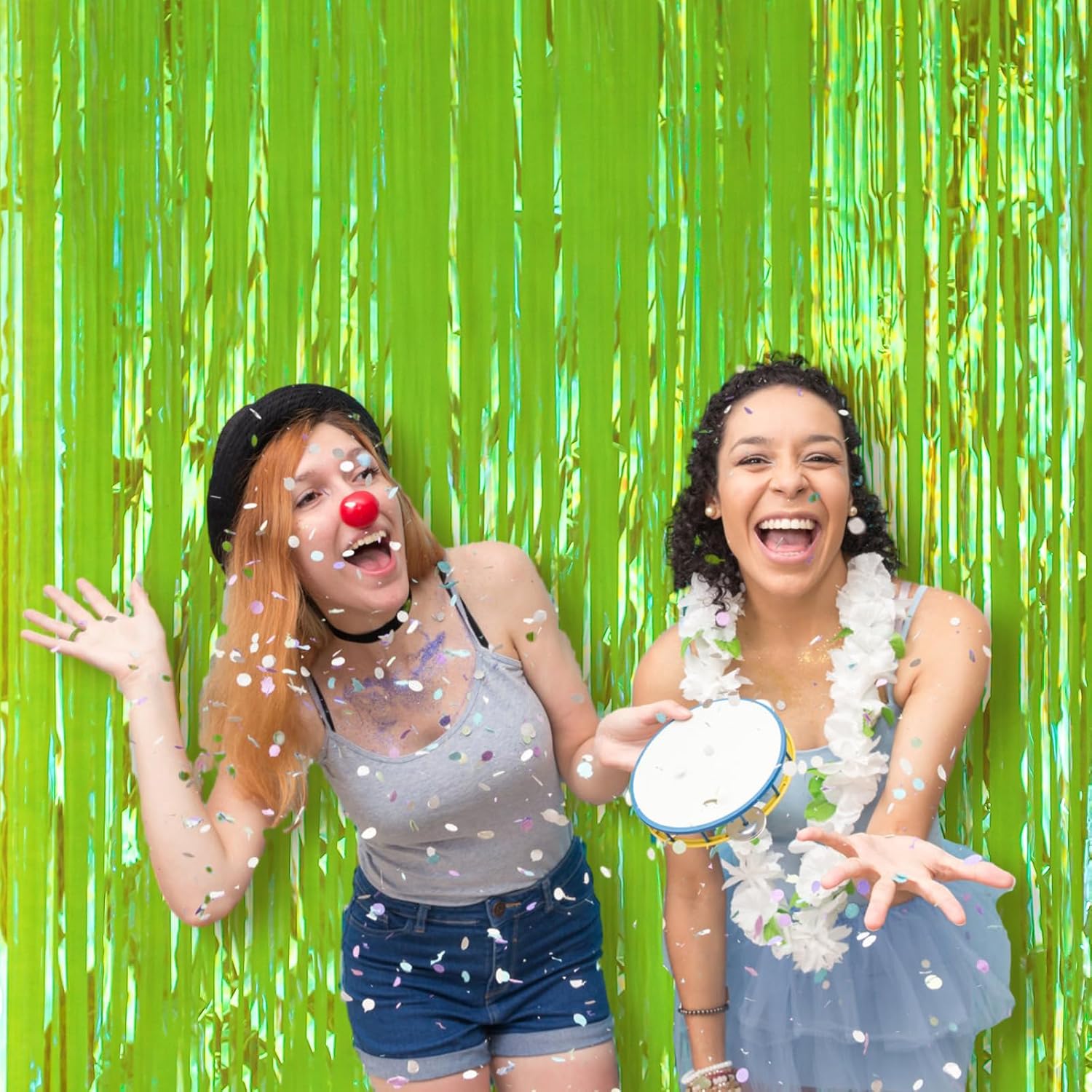 2 Pack 3.3x8.2 Feet Neon Green Foil Fringe Backdrop Curtains, Tinsel Streamers Birthday Party Decorations, Fringe Backdrop for Graduation, Baby Shower, Gender Reveal, Disco Party