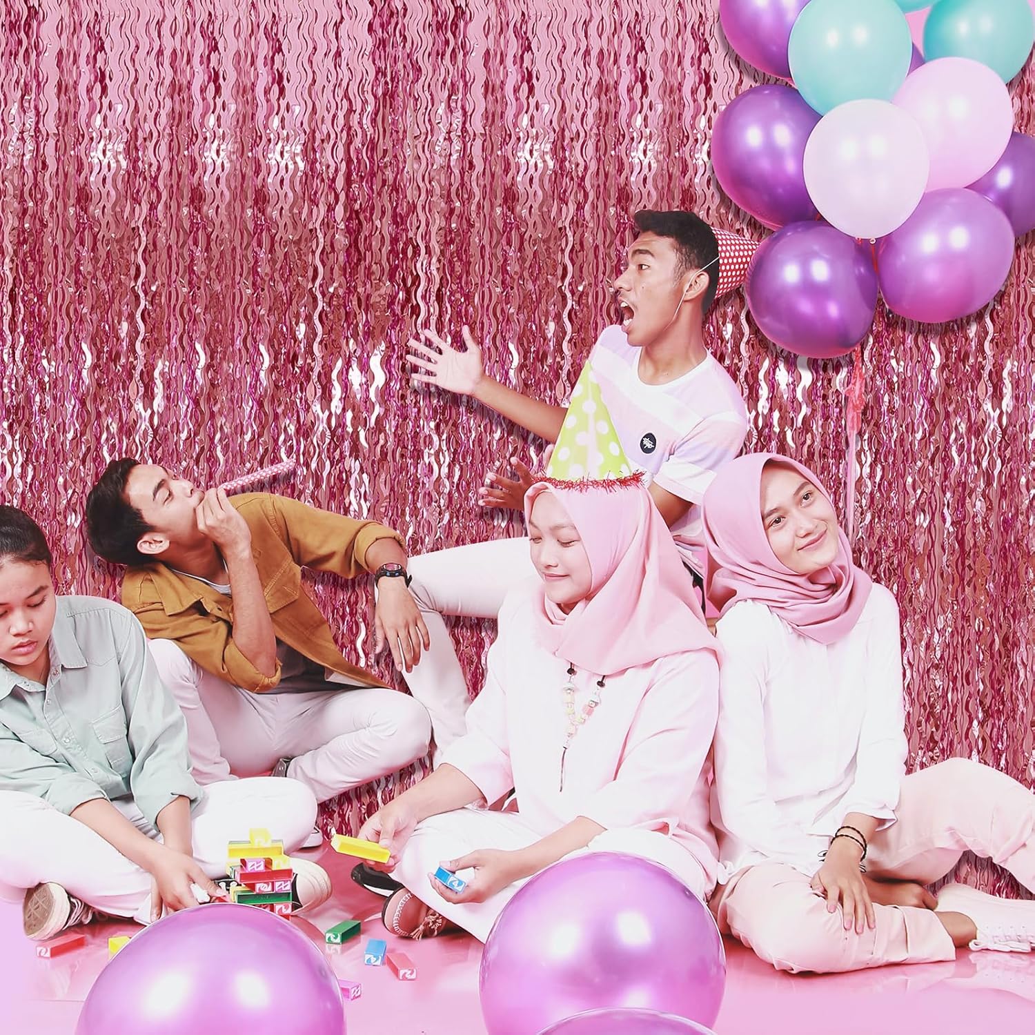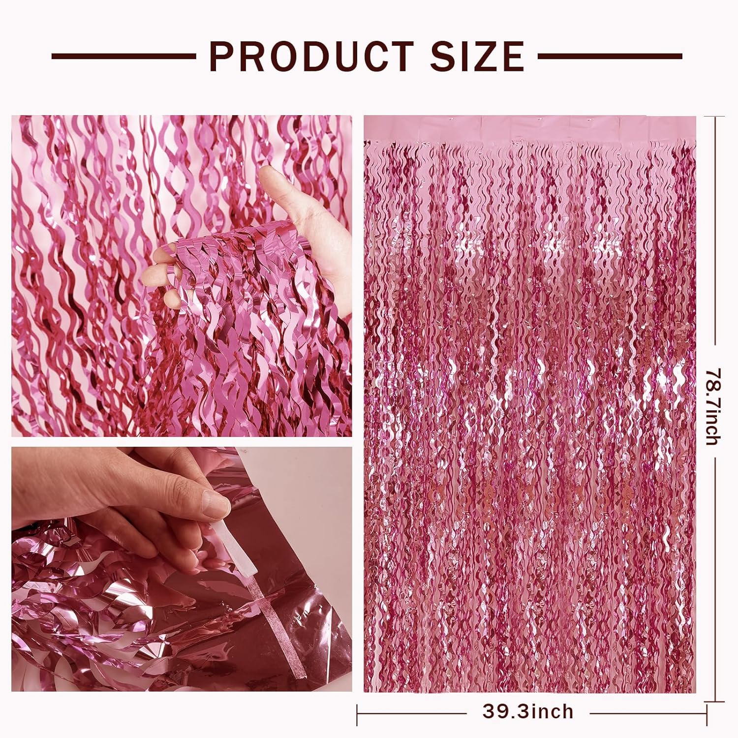- Pink Photo Backdrop Curtains - The wavy foil fringe curtain with sparkle, a stunning decorative piece that will add a touch of glamour and elegance to your party decorations.