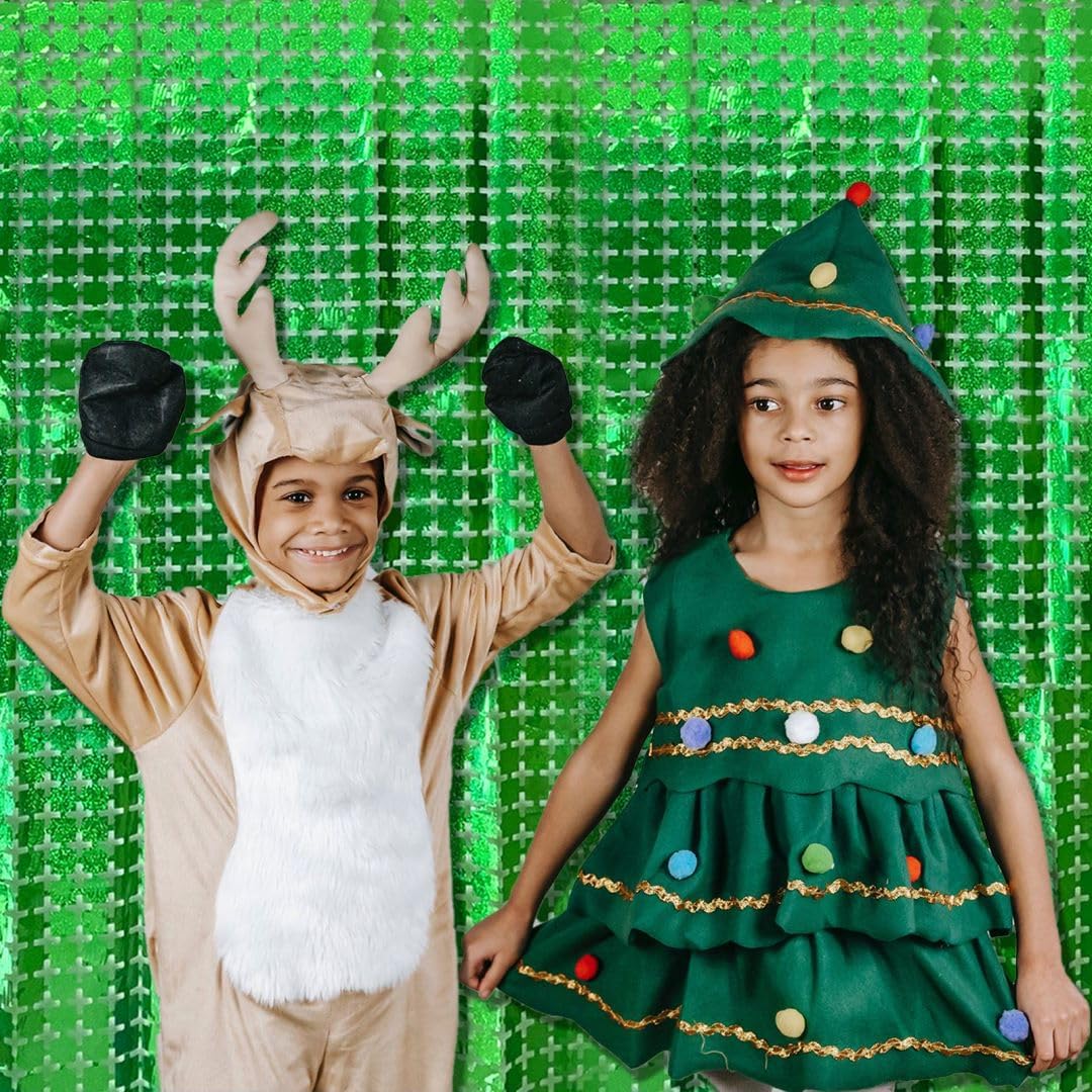 - Green Christmas Party Decorations - You can use this glitter gorgeous tinsel streamers foil background to decorate your celebration party. Hang them on a carpeted end or wall as a backdrop,or it could be one entrance to the party. You can paired with an LED light, balloons, banners and various photo props on this backdrop.