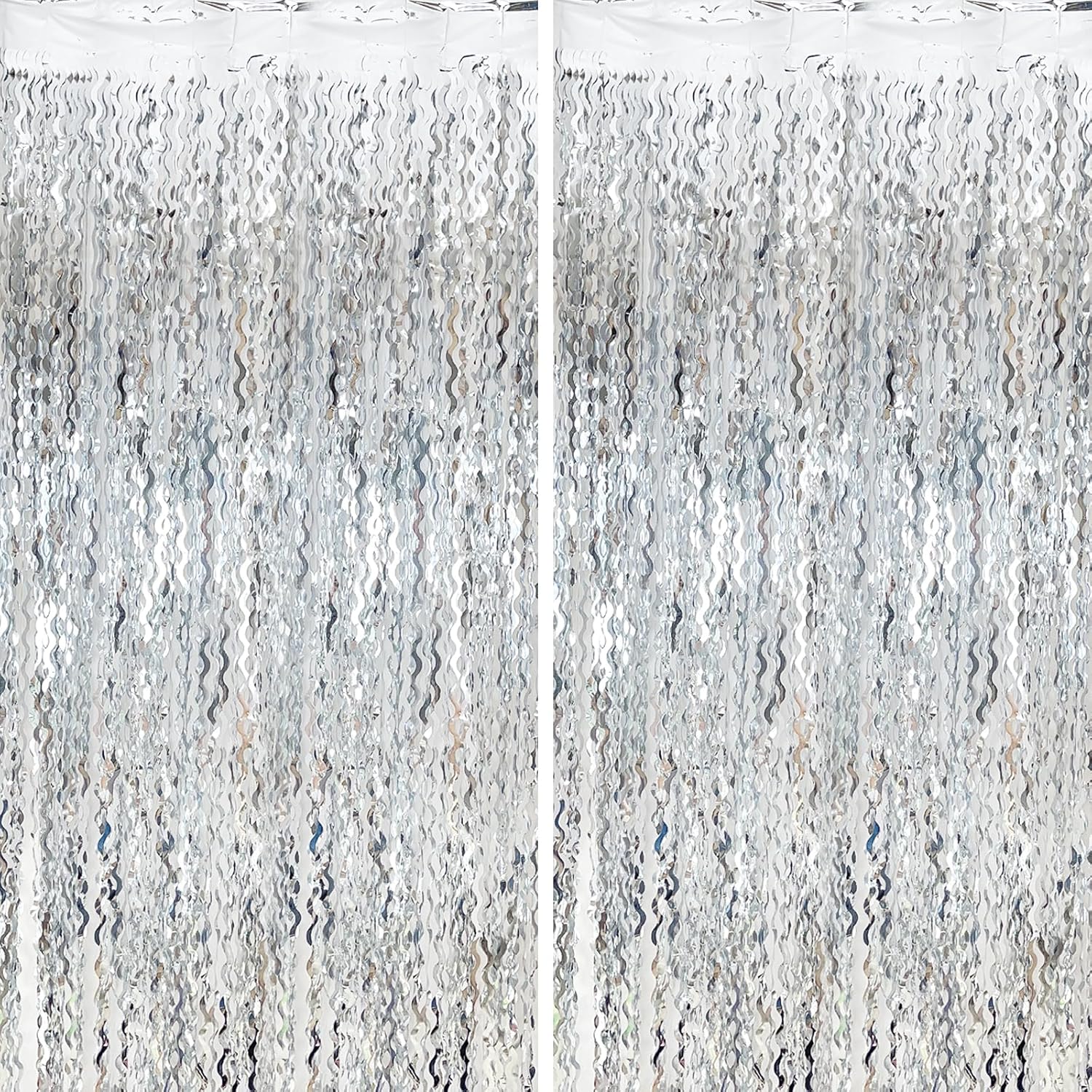 - Silver Photo Booth - The wavy foil fringe curtain with sparkle, a stunning decorative piece that will add a touch of glamour and elegance to your party decorations.