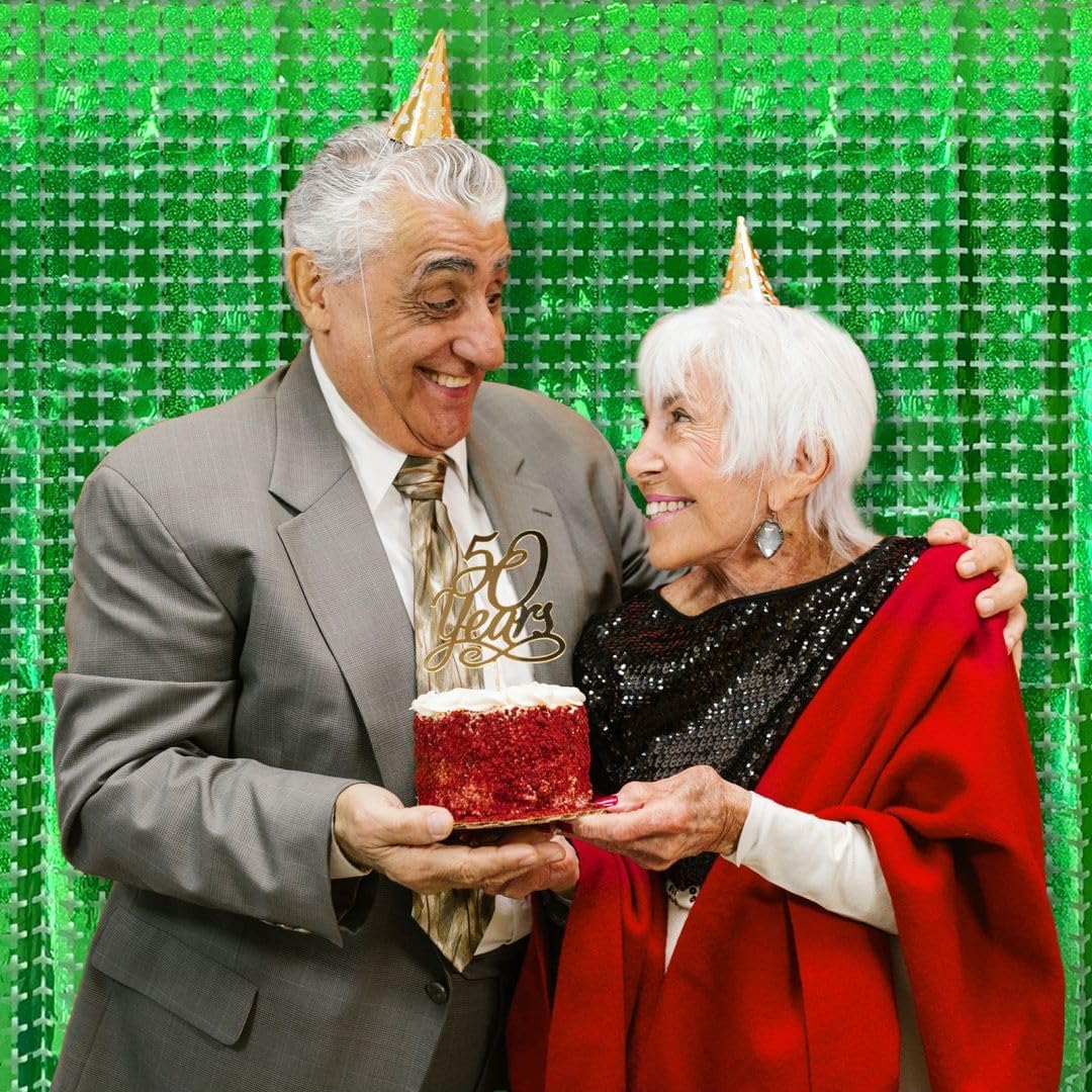 Square Tinsel Curtain Party Backdrop - 5pcs Glitter Foil Fringe Curtain Party Decor Green Photo Booth Backdrop Streamers for Halloween, Christmas, Birthday, Graduation, Wedding Party Decorations
