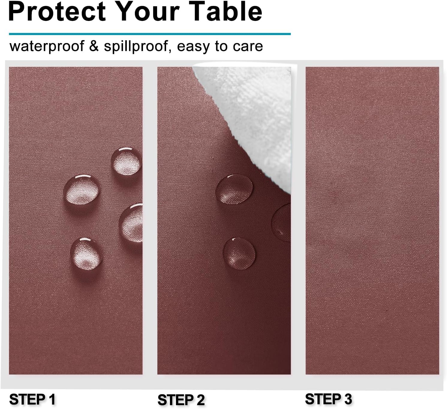 - Waterproof and Spill-proof Table Cloths: Featuring a fade and spill resistant polyester fabric, our tabletop covers easily protect your tables and furniture from scratches, stains and sun rays