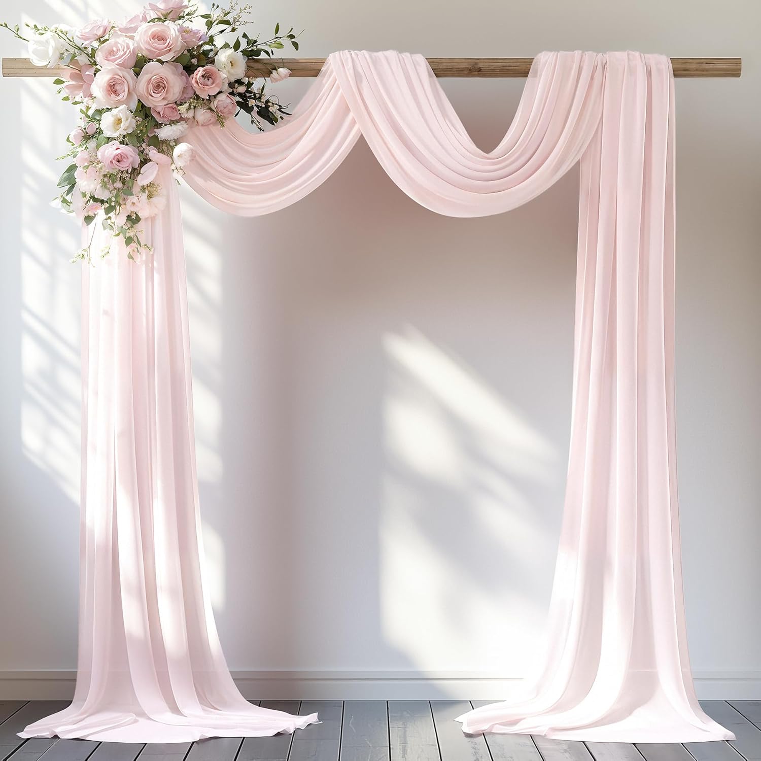 - Multipurpose Arch Draping Fabric: The chiffon fabric for draping are prefect for wedding ceremony reception, baby and bridal showers, photography background, party backdrop curtain decoration, decorative swags, window decorations and so on.