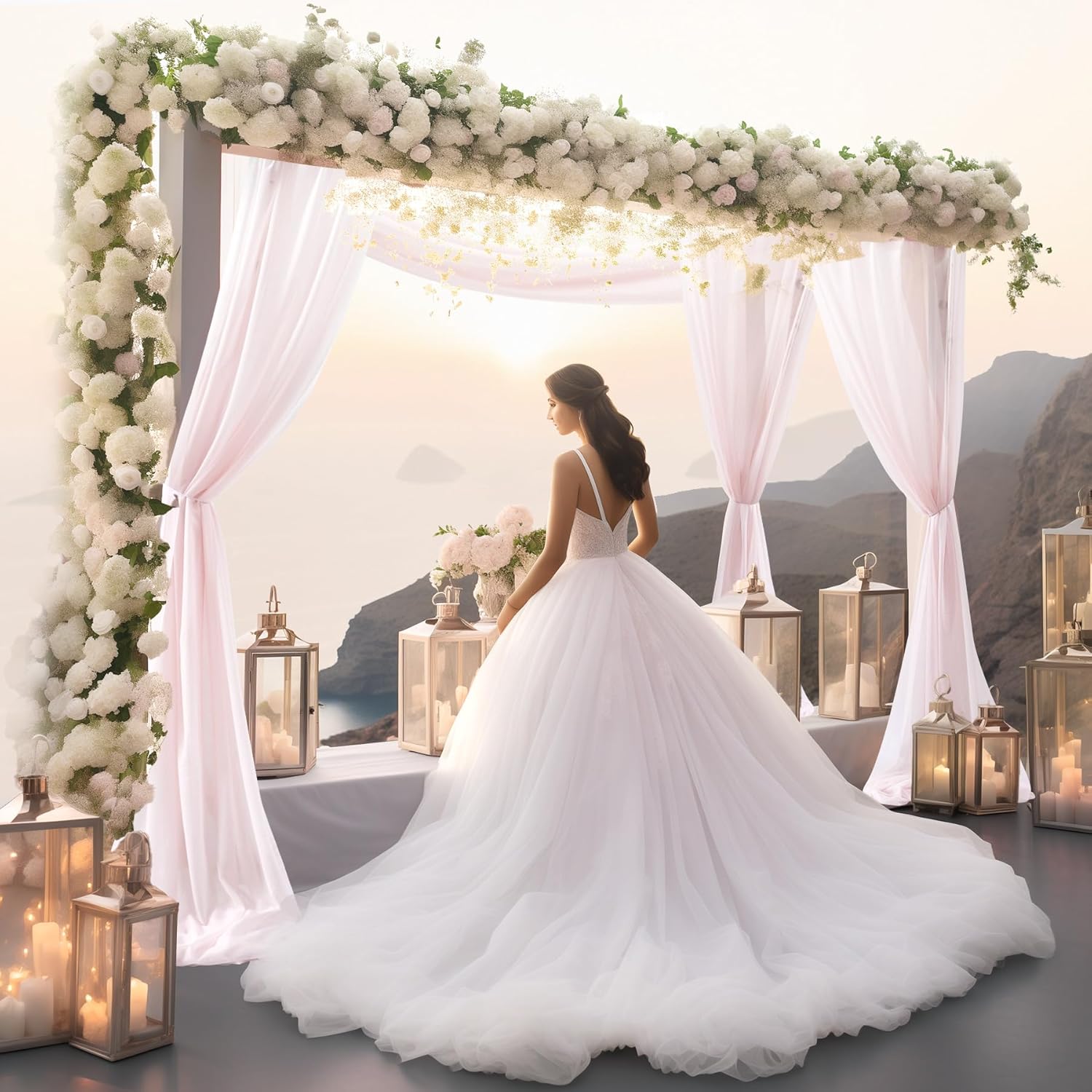 - Wedding Arch Drapes Material: These drapery fabric panels are made of an unique fabric that has a slight shimmer, they are silky soft and more graceful than tulle or nylon fabrics.
