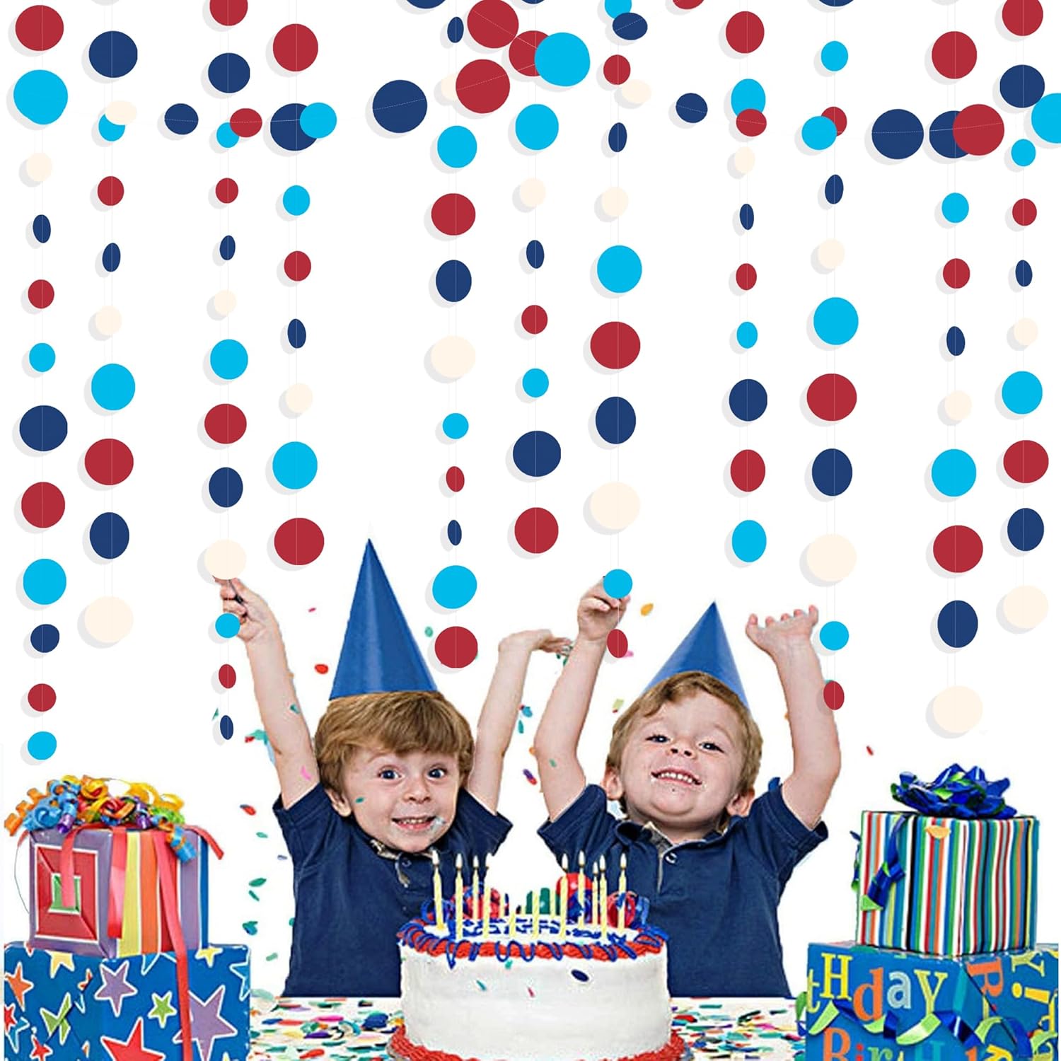 Nautical Party Decorations Circle Dot Garland Navy Blue Red White Hanging Paper Polka Dot Streamer for Nautical Pirate Ahoy Achor Baby Shower Birthday Wedding Bridal Shower Bachelorette Party Supplies