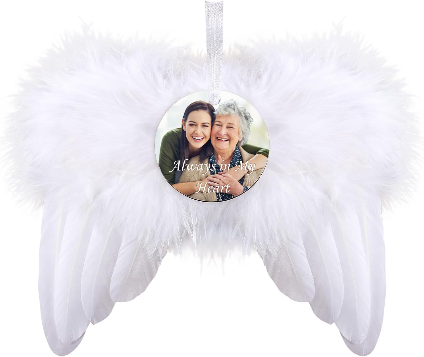 Personalized Photo Christmas Ornaments - Custom Christmas White Angel Wings Ornament Hanging, Feather Hanging Decor with Photo Text for Christmas Tree Xmas Gifts