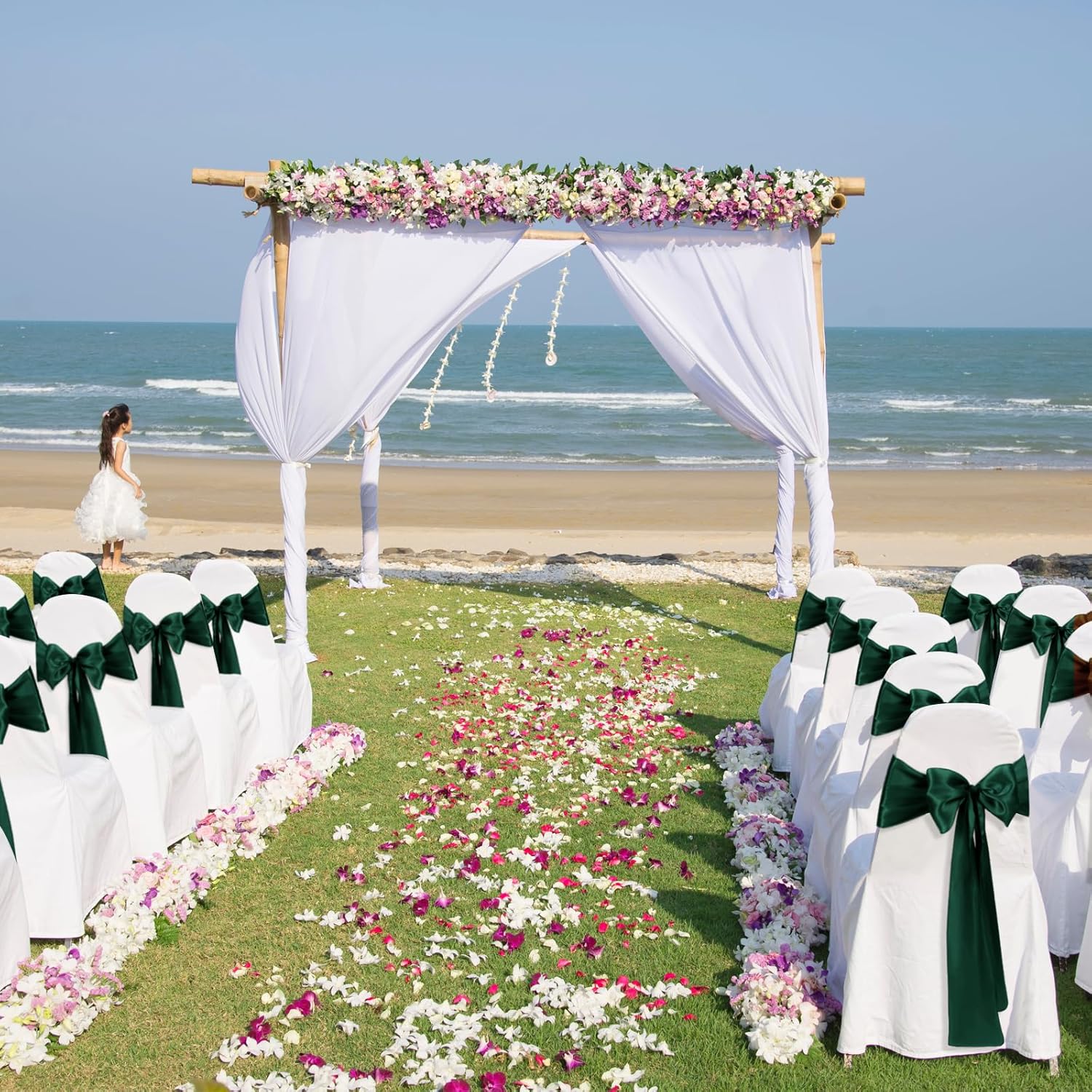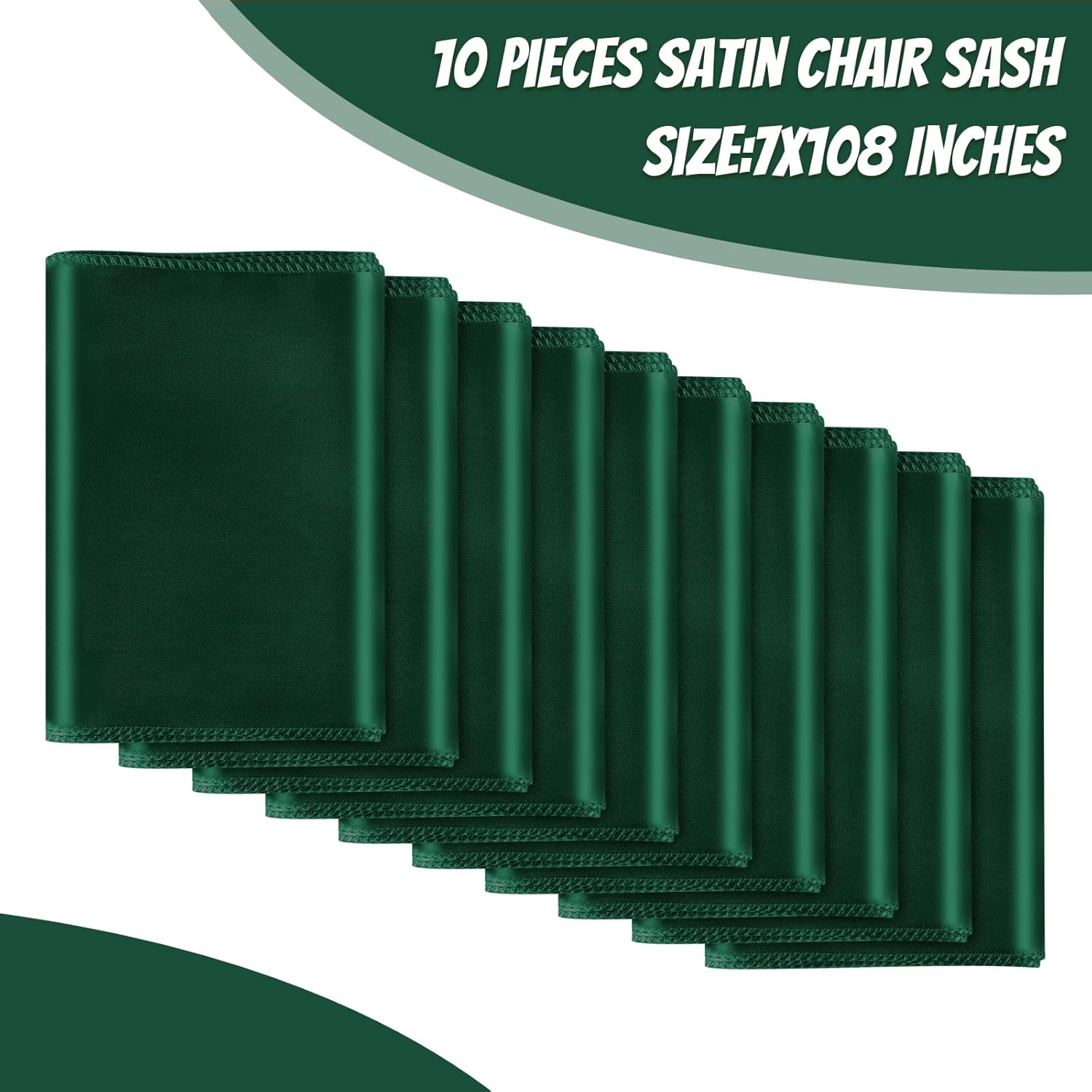 - Size & Package:You will get 10 pieces forest green satin chair sashes, and the size is about 108" x7" or 275cm(l) x 17cm(w). These chair ties adopt flating packing, please to tie the bow by yourself. Each package includes chair sashes only, no chair covers
