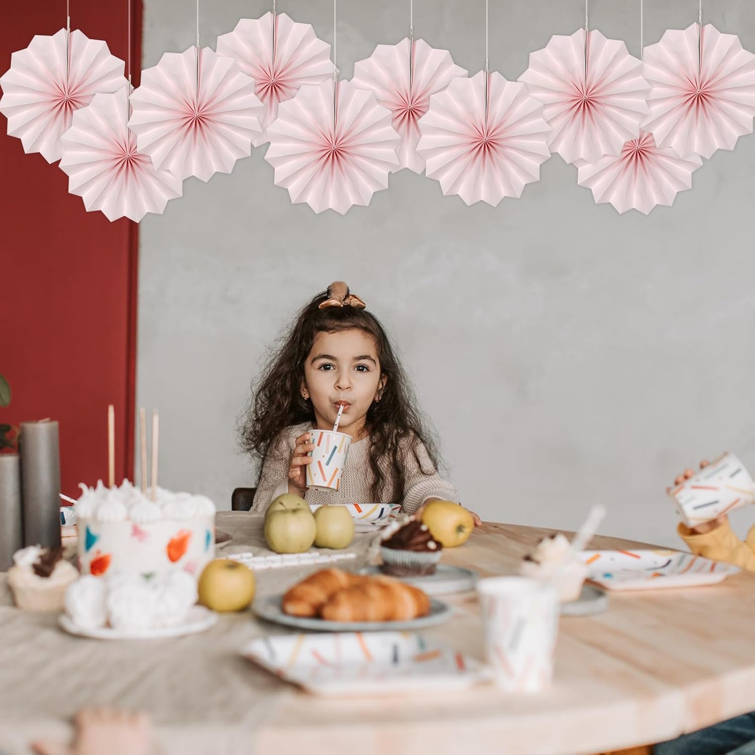 Pink Birthday Decorations,DIY Pink Paper Fans Hanging Decoration ,Party Supplies Party Fans 8in, Pink Christmas,Wedding Graduation Events Accessories 30 Color DIY Set (Baby Pink)