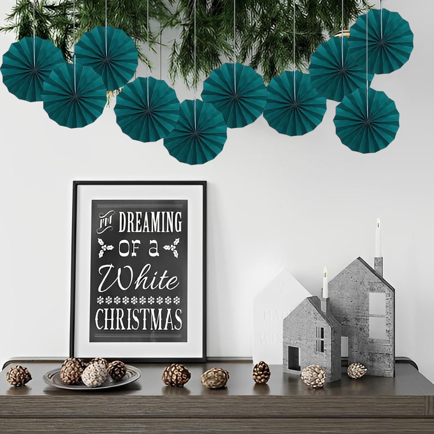 Green Birthday Decorations,DIY Green Paper Fans Hanging Decoration ,Party Supplies Party Fans 8in, Cactus Party Decorations,Wedding Graduation Events Accessories 30 Color DIY Set (Blackish Green)