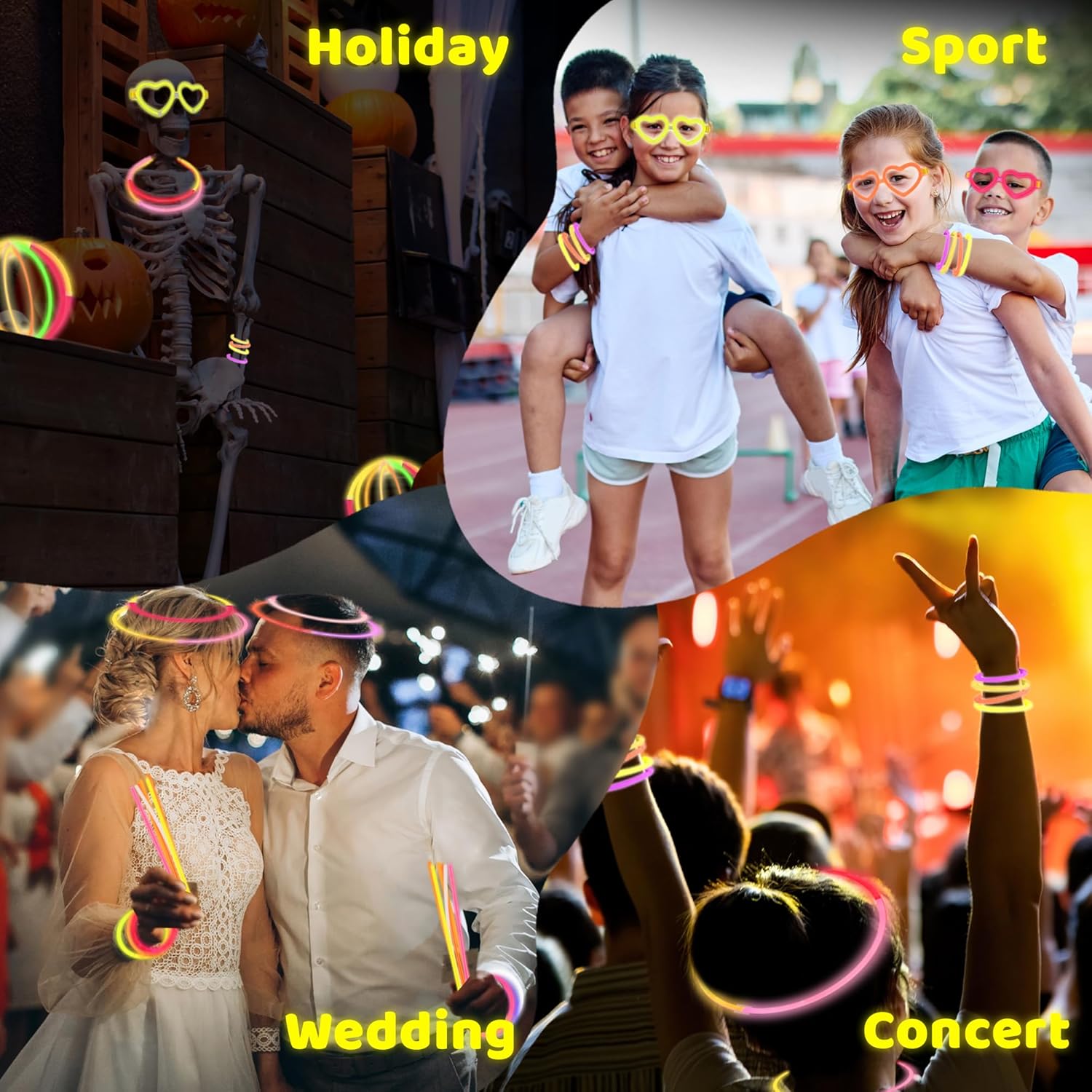 - CATCH EVERY EYE: Make your party pop with these glow in the dark accessories! Every set comes with 20 heart-shaped frames, 60 glowsticks, and 60 connectors for the bracelets. Activate the glowsticks and elevate the party.