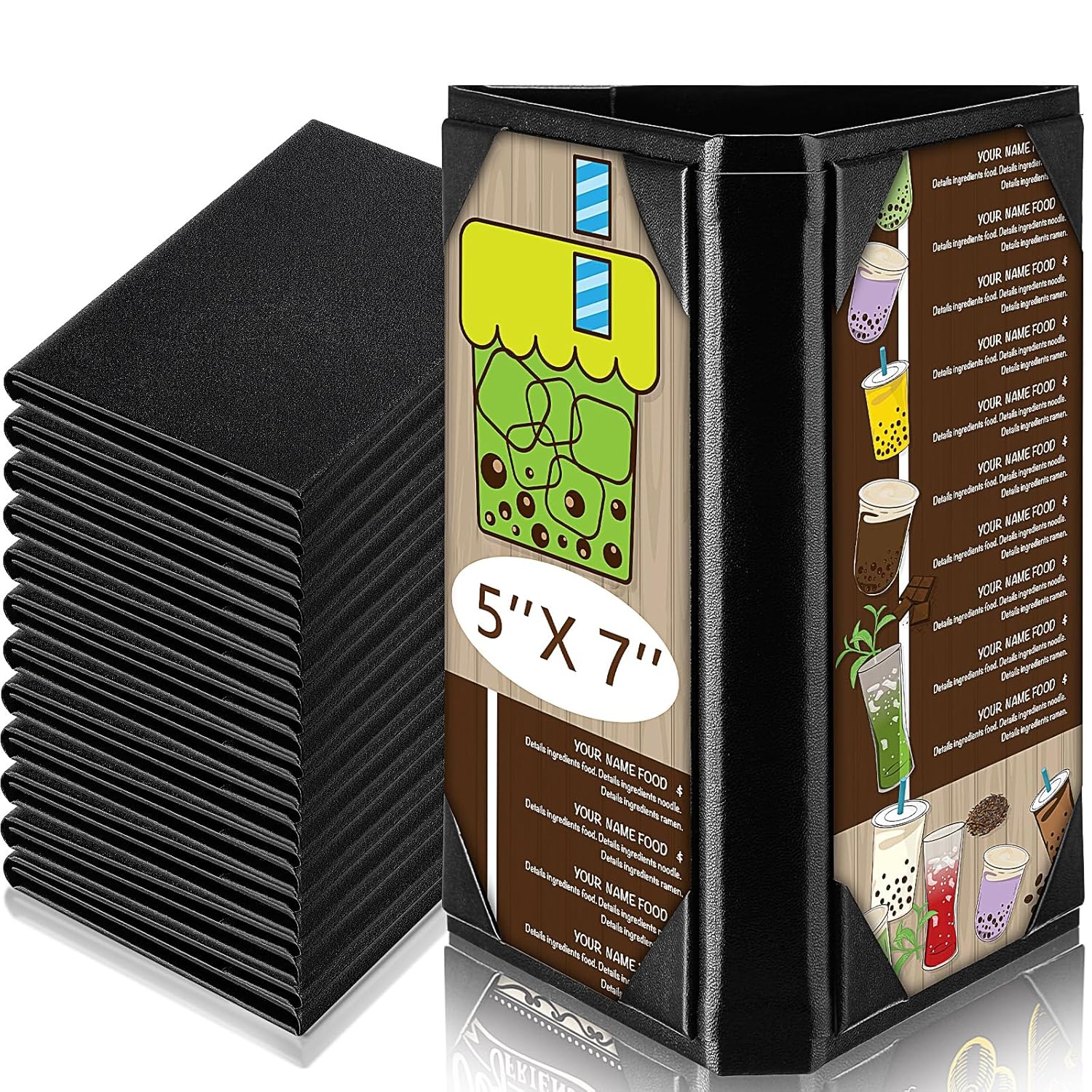 - Versatile Menu Holders: this package includes 12 pieces of 3 sided menu holders; Designed to suit showcase standard 5" x 7" menu sheets, which not only protect but also enhance your menu presentations; The classic black color adds a touch of elegance to your dining space, making your menus stand out and captivate customers