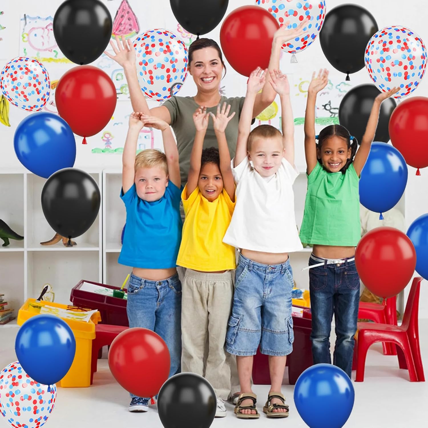 Red Blue Black Balloon Set, 12 Inch Matte Red Black and Royal Blue Latex Balloon with Red Blue Confetti Balloons for Party Boys Birthday Shower Graduation Party Decorations
