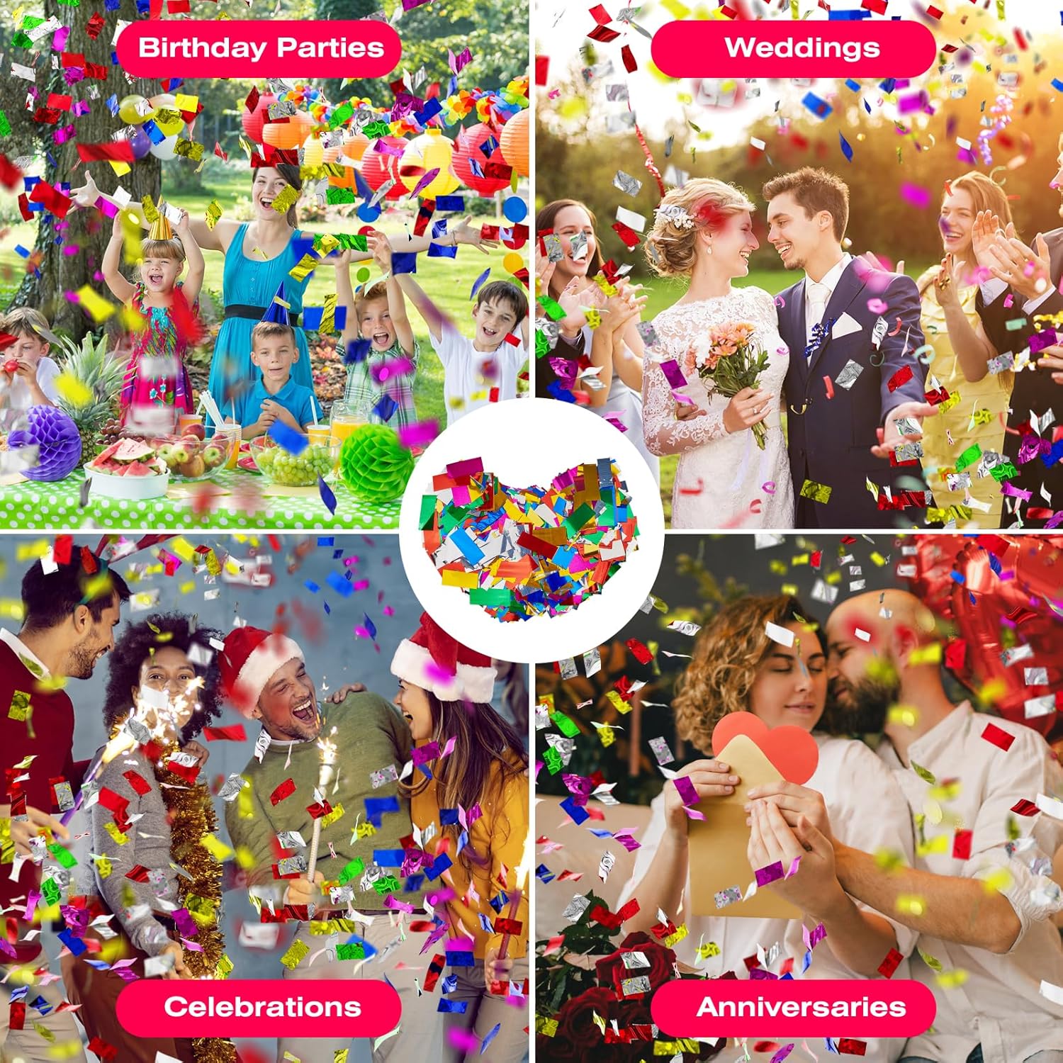 - Suitable for birthday parties, special moment, celebrations, decorations, weddings, anniversaries and any occasion! It is also very suitable for refilling confetti sticks and confetti launchers.