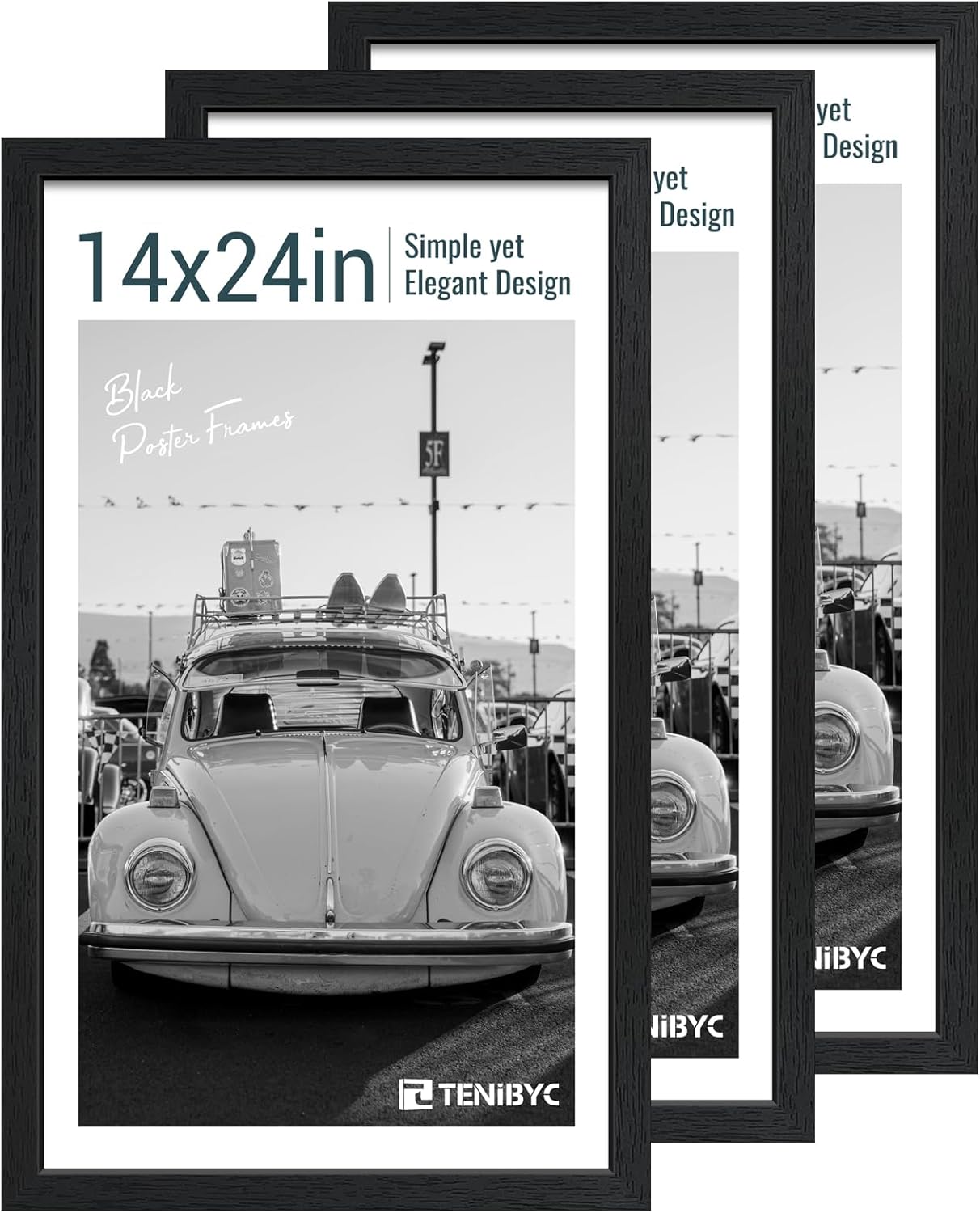 14x24 Poster Frame 3 Pack, Textured Black Solid Wood Gallery Picture Frame - Wall Hanging