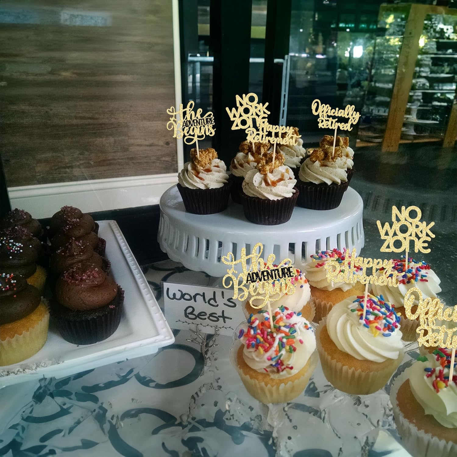 24Pcs Happy Retirement Cupcake Toppers Officially Retired Cake Toppers No Work Zone Adventure Begins Cupcake Picks Retirement Theme Farewell Birthday Party Cake Decorations Supplies Gold