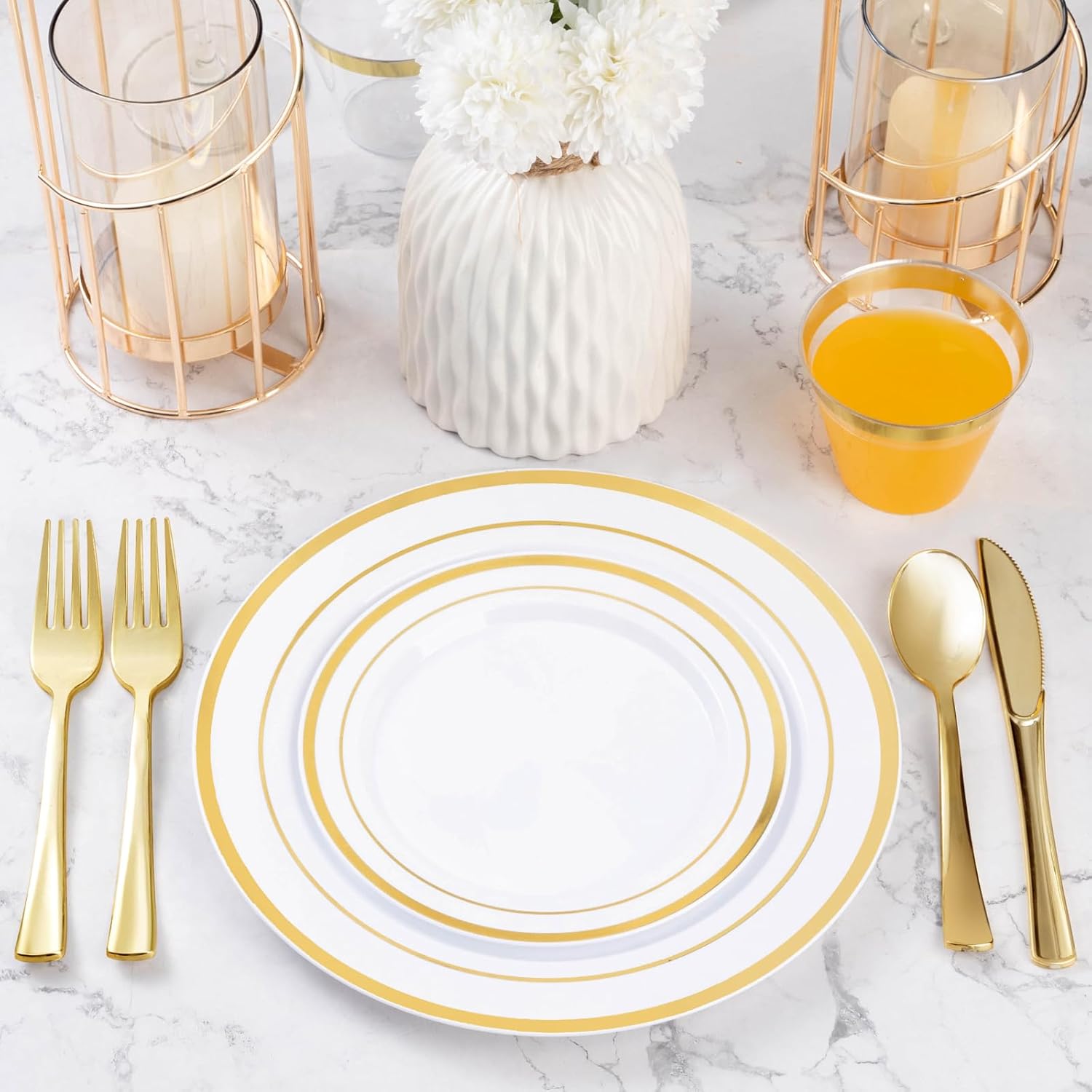 - IDEAL CHOICE FOR PARTY DECORATION - These party plates with a gold rim look premium and similar to porcelain. Our dishes plates add a modern decorative style to your table that's uniquely. Their elegant appearance can meet the aesthetic requirements of all people, and they can be used for any occasion.