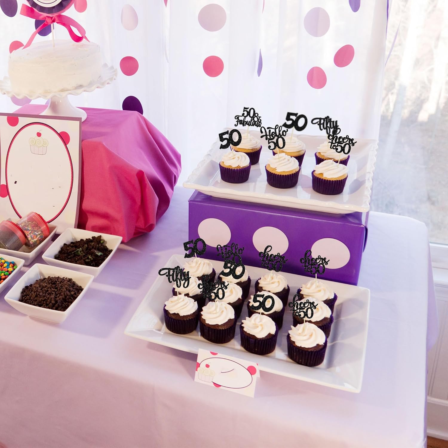 - -These Happy 50th Birthday Cupcake Toppers are so cute and good for happy 50th birthday theme party, cheers to 50 years theme party, 50 fabulous theme party, happy 50th birthday anniversary theme party cake decorations. They can make your cupcake more attractive and bring the fun to your party. You can also apply them for ice cream, fruits, cookies and other desserts.