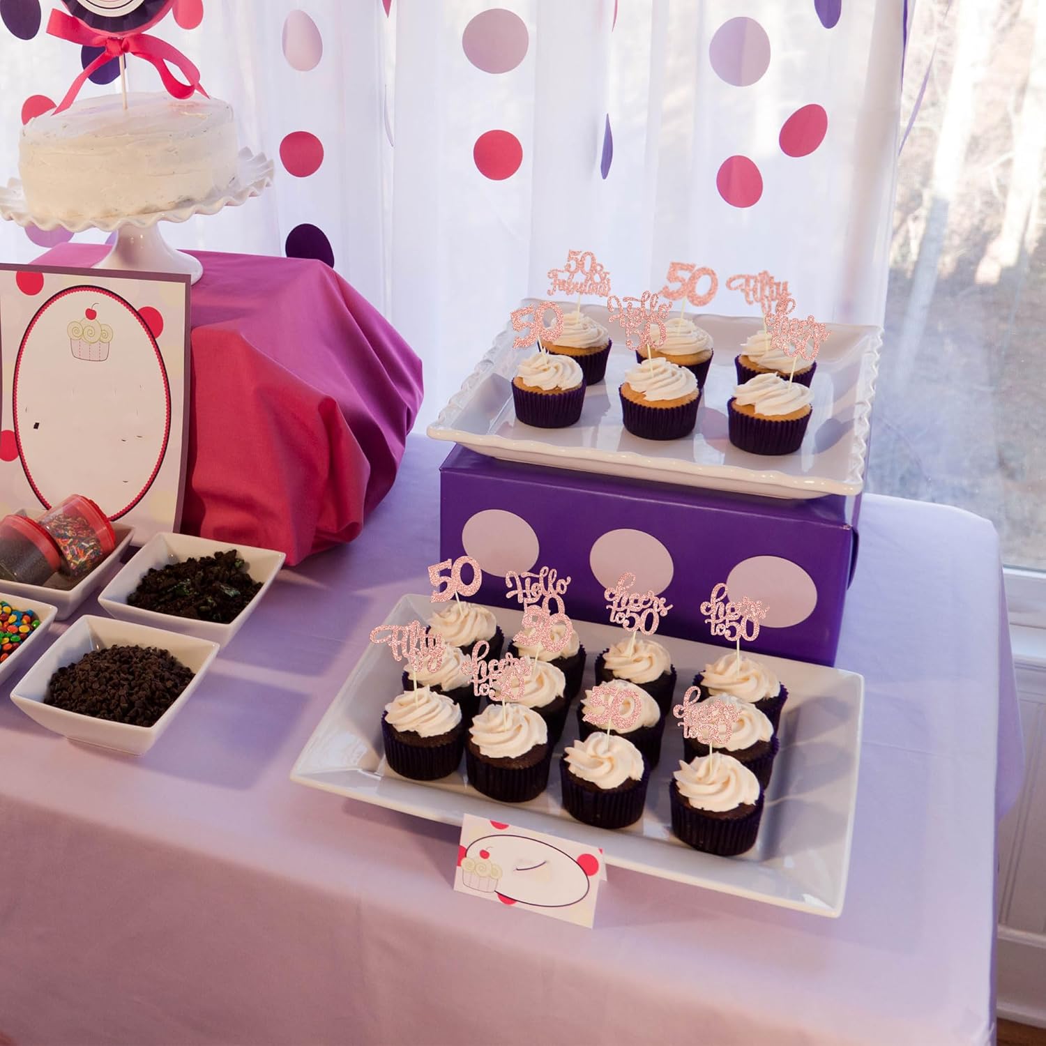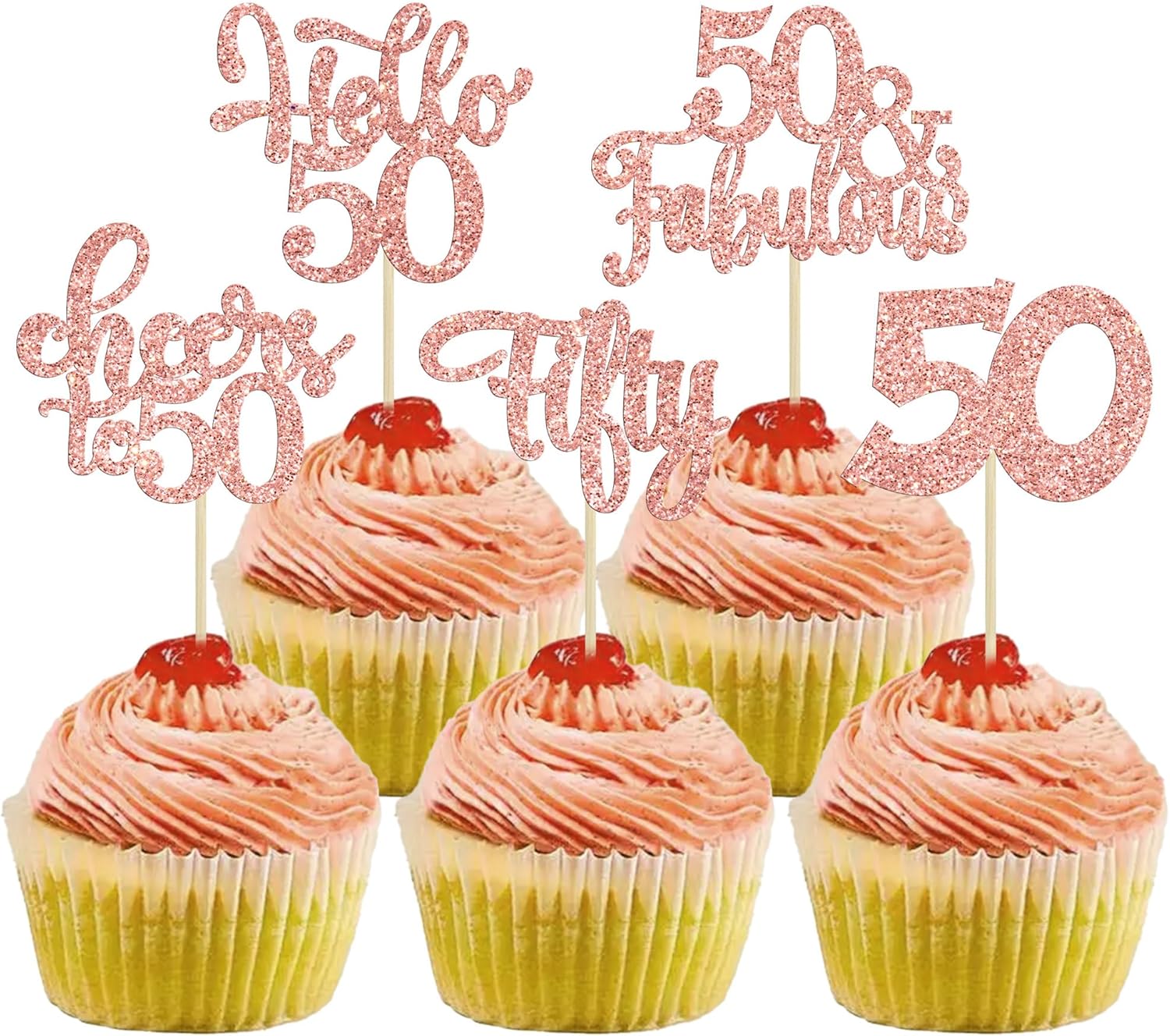- -These Happy 50th Birthday Cupcake Toppers are so cute and good for happy 50th birthday theme party, cheers to 50 years theme party, 50 fabulous theme party, happy 50th birthday anniversary theme party cake decorations. They can make your cupcake more attractive and bring the fun to your party. You can also apply them for ice cream, fruits, cookies and other desserts.