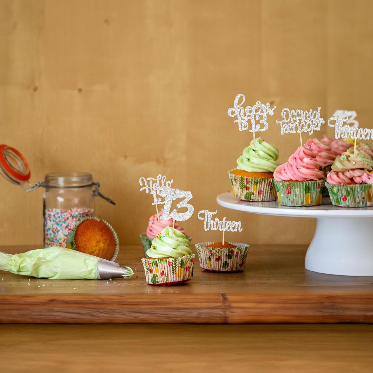 - -Package included: 24Pcs Happy 13th Birthday Cupcake Toppers. Comes with assembled, so you can insert into your cake directly, which make your cake more interesting.