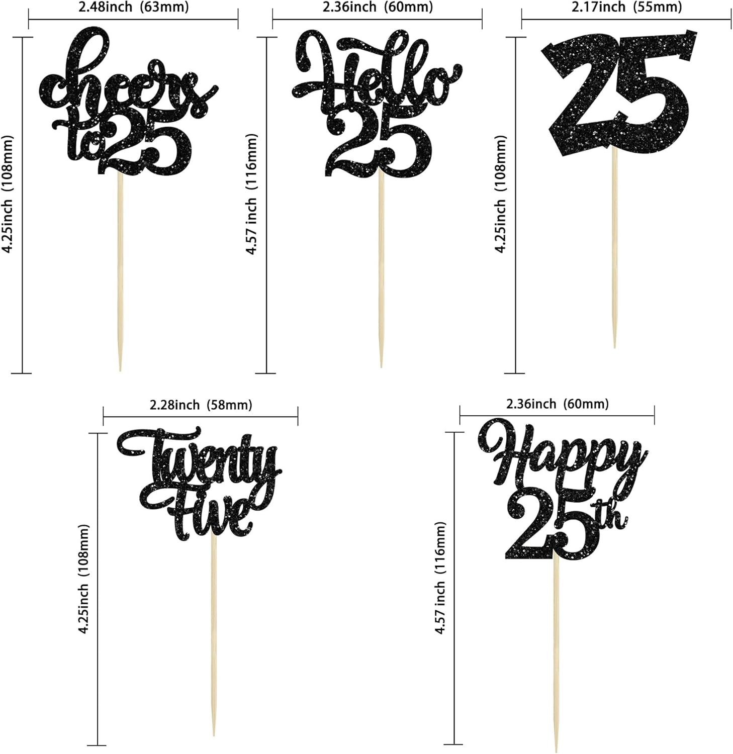 - -These Happy 25th Birthday Cupcake Toppers are so cute and good for happy 25th birthday theme party, cheers to 25 years theme party, 25 fabulous theme party, happy 25th birthday anniversary theme party cake decorations. They can make your cupcake more attractive and bring the fun to your party. You can also apply them for ice cream, fruits, cookies and other desserts.