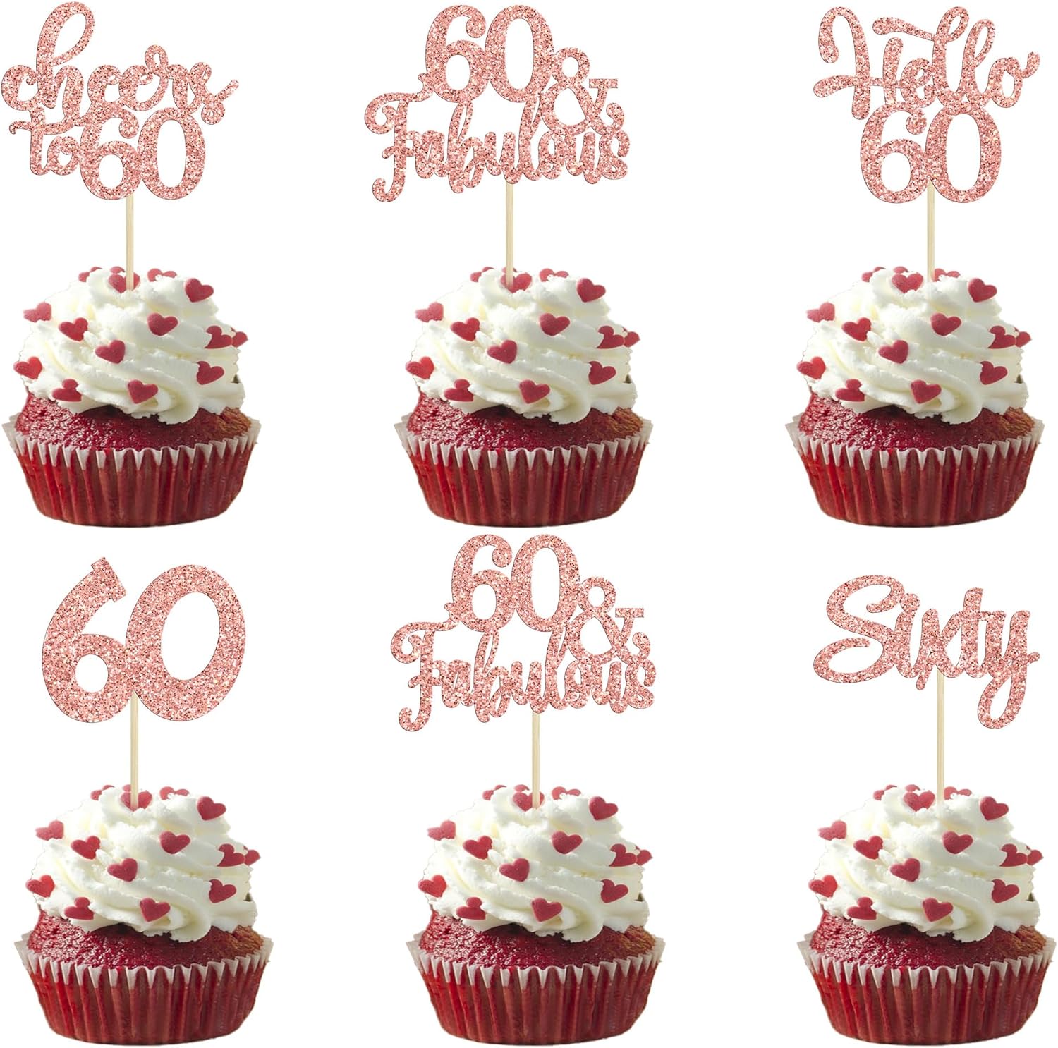 - -These Happy 60th Birthday Cupcake Toppers are so cute and good for happy 60th birthday theme party, cheers to 60 years theme party, 60 fabulous theme party, happy 60th birthday anniversary theme party cake decorations. They can make your cupcake more attractive and bring the fun to your party. You can also apply them for ice cream, fruits, cookies and other desserts.