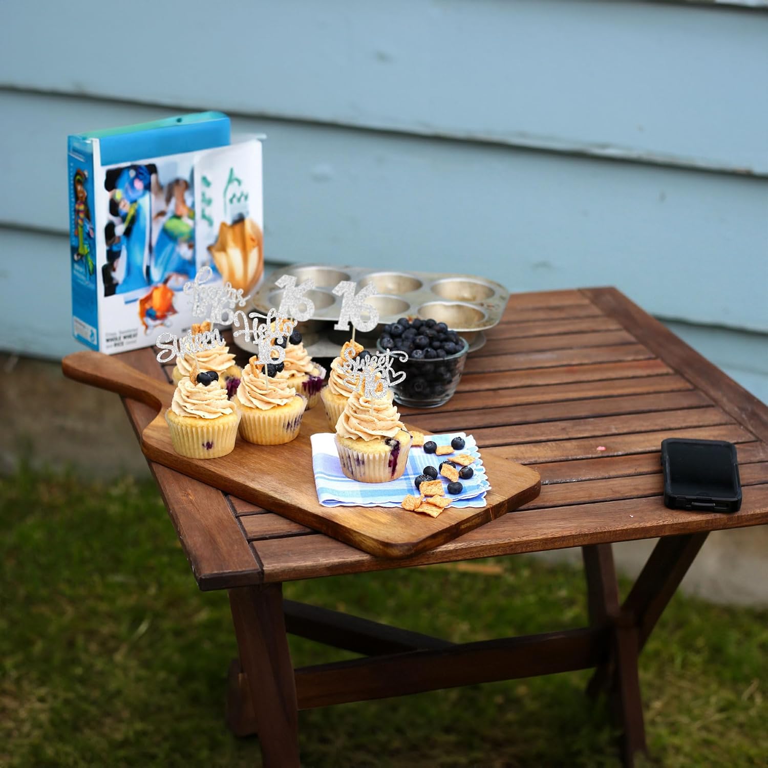 30pcs 16th Birthday Cupcake Toppers - Sixteen Happy Cupcake Picks, Cheers to Sweet 16 Cake Decorations - Silver Glitter