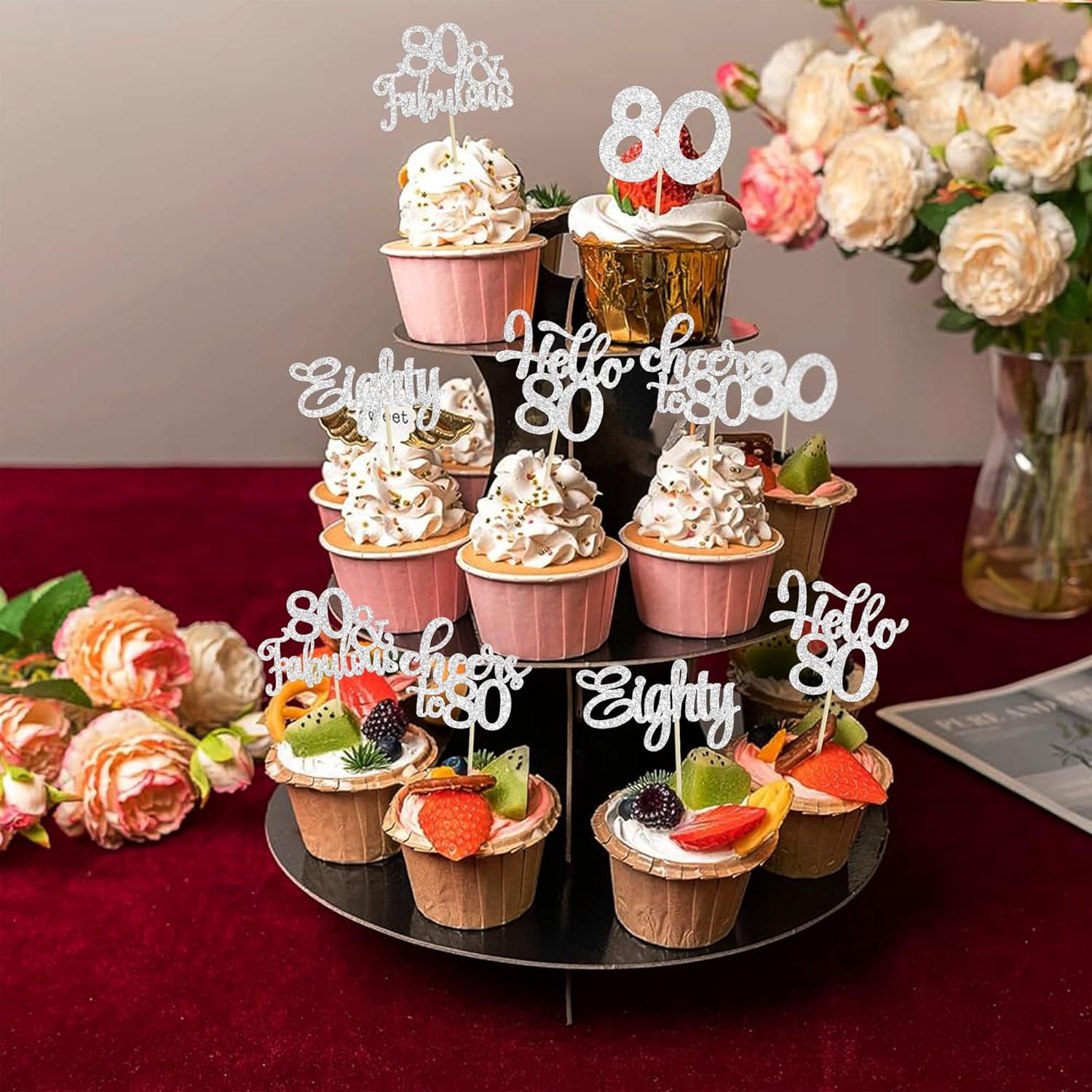 - -These Happy 80th Birthday Cupcake Toppers are so cute and good for happy 80th birthday theme party, cheers to 80 years theme party, 80 fabulous theme party, happy 80th birthday anniversary theme party cake decorations. They can make your cupcake more attractive and bring the fun to your party. You can also apply them for ice cream, fruits, cookies and other desserts.