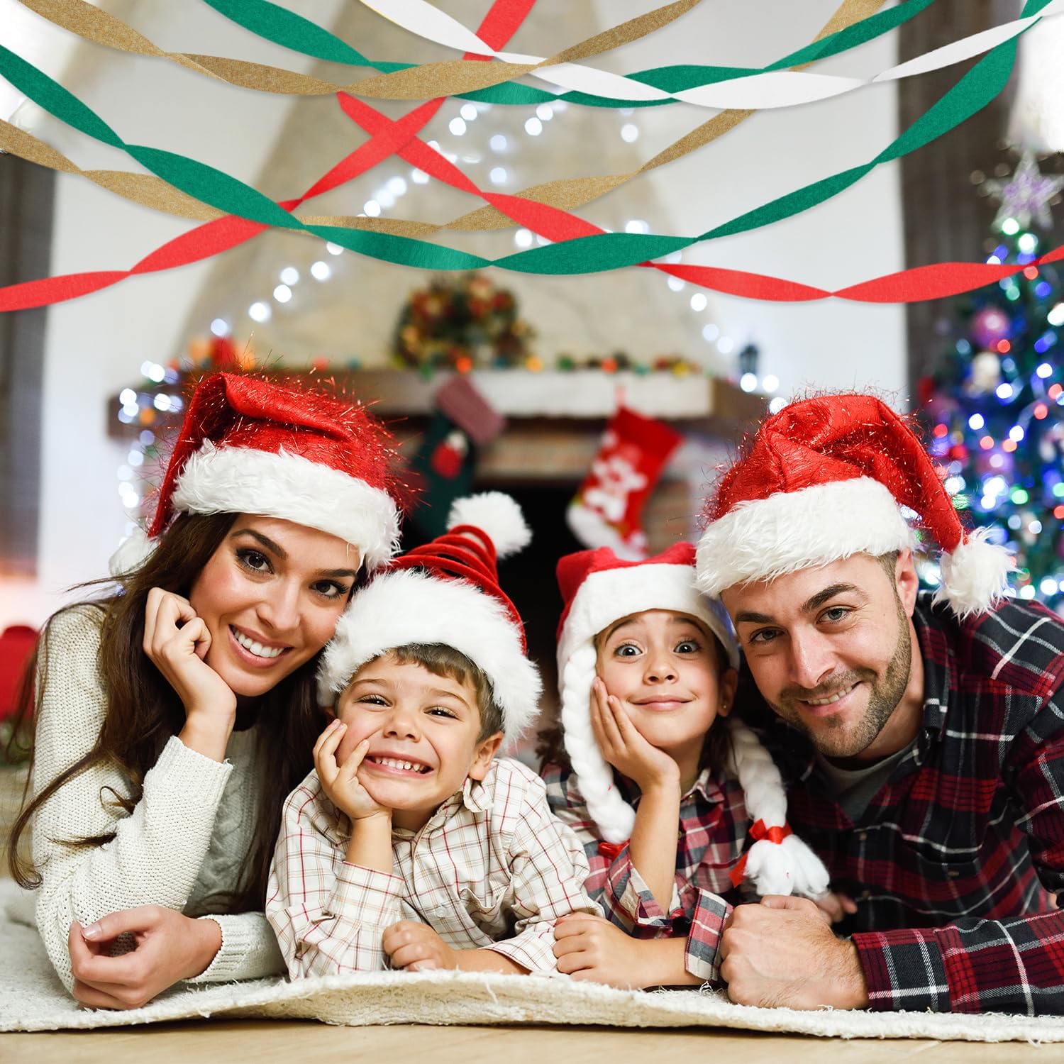 - 【Simple to Use】The Christmas Party Streamers are pre-rolled, easy to open and ready to use. You can simply hang the paper strips ribbon from the ceiling to create a tent effect, twist streamers together into spirals of color, or drape around furniture to personalize your party style. Hang them or stick them on wall, window, furniture, fireplace, can be used for bedroom, ball room, living room, yard, patio, porch, banquet hall, indoor and outdoor or as background, backdrop of photo booth.