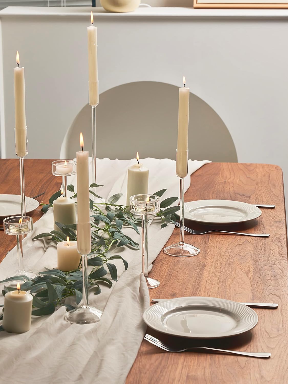 Candle Holder, Glass Taper Candle Tall Candlestick Holder, 3 Different Heights, for Table Centerpiece, Wedding, Party, Clear, 12pcs