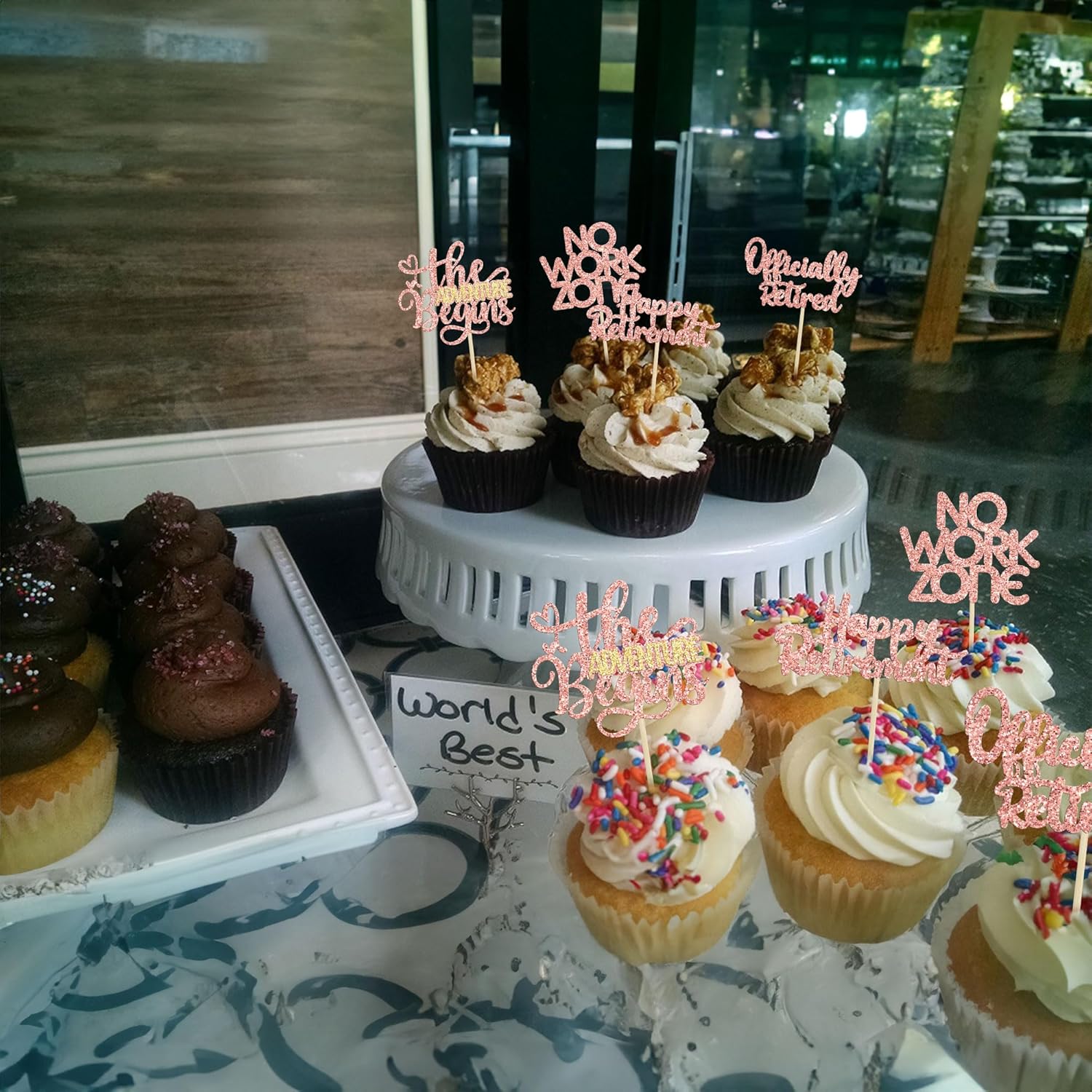 24Pcs Happy Retirement Cupcake Toppers Officially Retired Cake Toppers No Work Zone Adventure Begins Cupcake Picks Retirement Theme Farewell Birthday Party Decorations Supplies Rose Gold