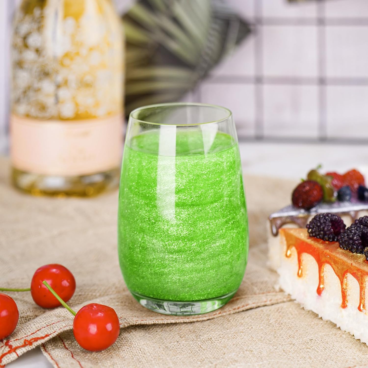 NiHome Edible Food-Grade Glitter Powder Glimmer Luster Dust Metallic Fancy Food Decorating Sprinkle Glimmery Dust for Drink Wine Beverage Cake Bakery Vegan Allergen-Free (Fruit Green, 0.35oz/10g)