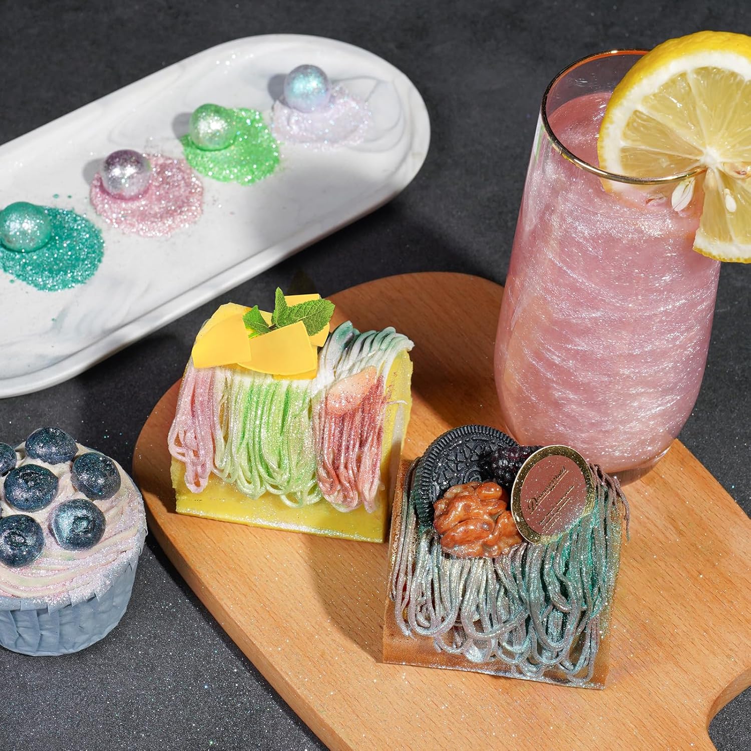 - 🌟【Easy to Use】Specially developed for food decoration and craft industries, this luster dust produces realistic looks by highly pigmented colors with a metallic finish. The pretty fine grain is more convenient for painting. To add glimmer and sparkle to your creations, simply sprinkle or dry brush the luster glitters on them. This product adheres very well to both wet and dry mediums. Attention: Seal and store glitter powder in a cool and dry place after use. Do not expose to excessive heat.