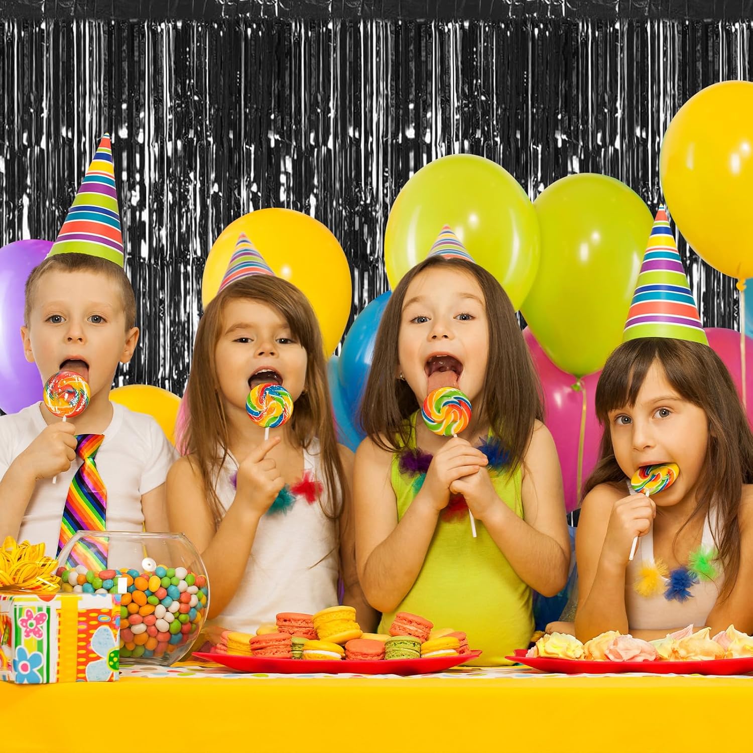 - 【Ideal Party Decoration】Show off your creativity and make your party stand out by using these black foil fringe curtains to decorate your party. You can hang them on a door or wall as a surprise entrance to the party, or pair them with LED lights, balloons, and banners to create a shiny party backdrop for different themes and occasions.