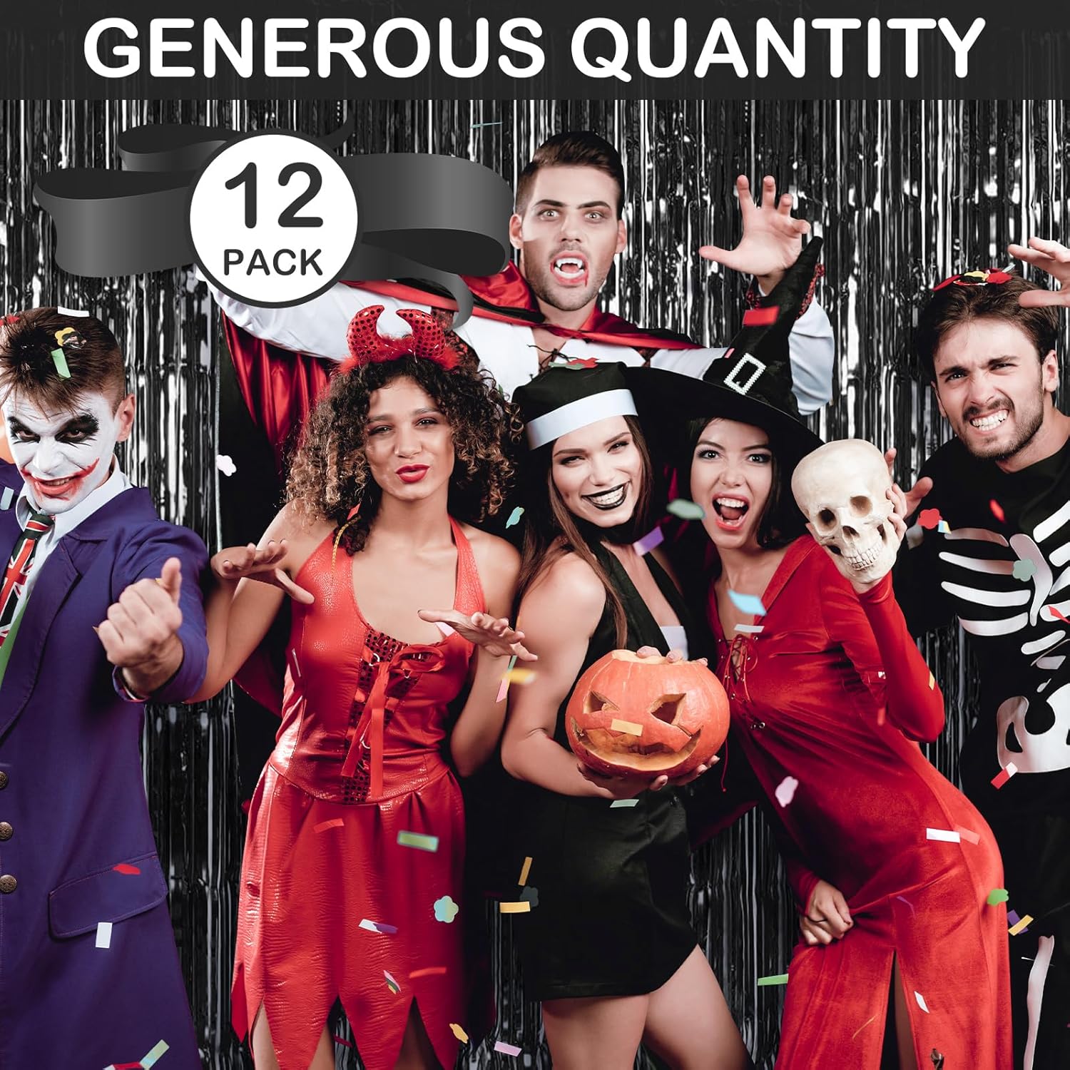 - 【Generous Quantity】Our party decoration supplies include 12 pieces of black party streamers, the size of each black foil curtain is 3.3ft x 8.2ft(1m x 2.5m). The extended length and rich quantity can help you create a sparkling party atmosphere and meet your various party decoration needs.
