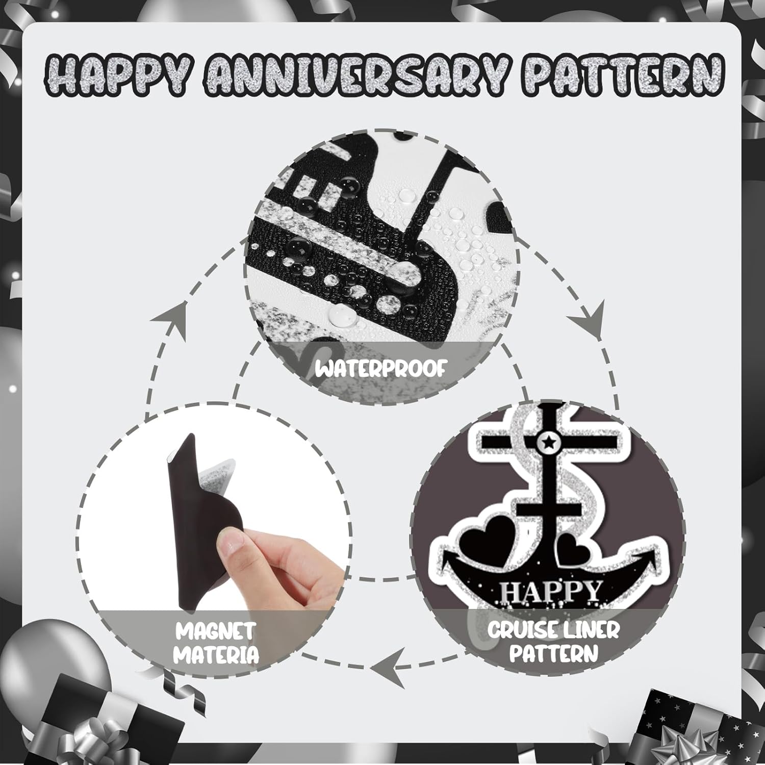 - 💌Cruise Door Magnets Decorations:You will get 16pcs of Black Silver 25th Anniversary Cruise Door Magnets.These 25th Anniversary Cruise Door Magnets have "25th Anniversary Cruise" and many shapes.With these beautiful 25th anniversary magnets decorations, they further set off a atmosphere of 25th anniversary.