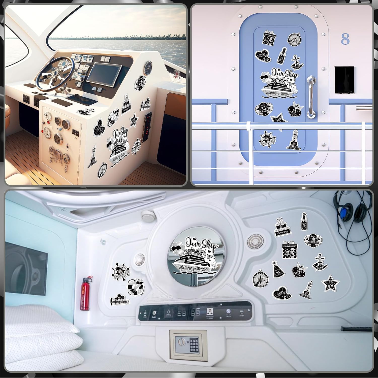 - 💌Wide Application: Because these Happy 25th Anniversary Cruise Ship Door Decors are suitable for metal and magnetic surfaces, you can stick them on garage doors, refrigerator doors, eraser boards, car doors and more, easily adding a touch of 25th wedding anniversary cheer to your home or cruise!