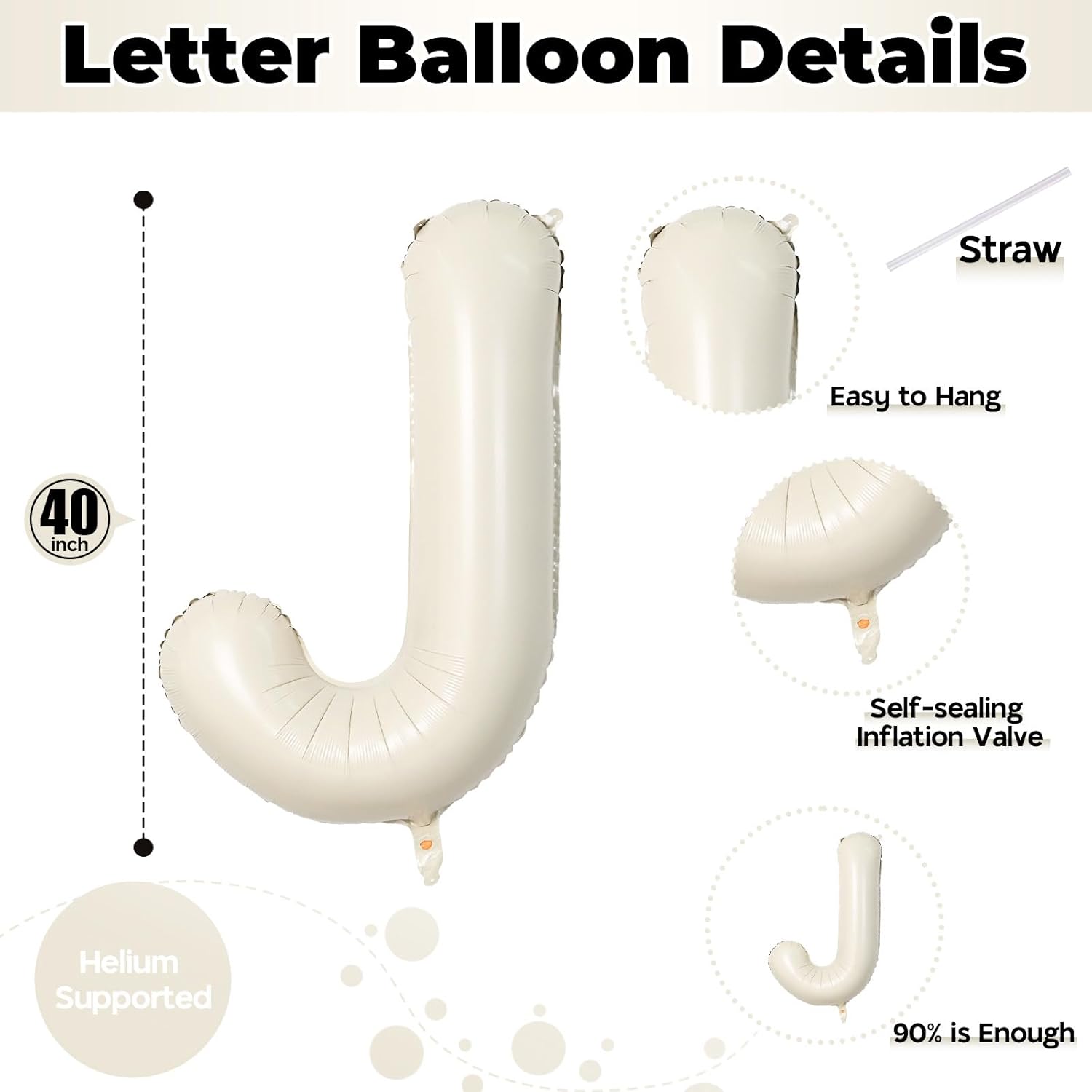 - ๐ What You Get: Our product package includes 1pcs 40 inch "J" letter foil cream white balloon and 1pcs convenient straw for inflate. You can choose any big letter balloons to combine and customize the word you want to form. Make your party more unique and meaningful.