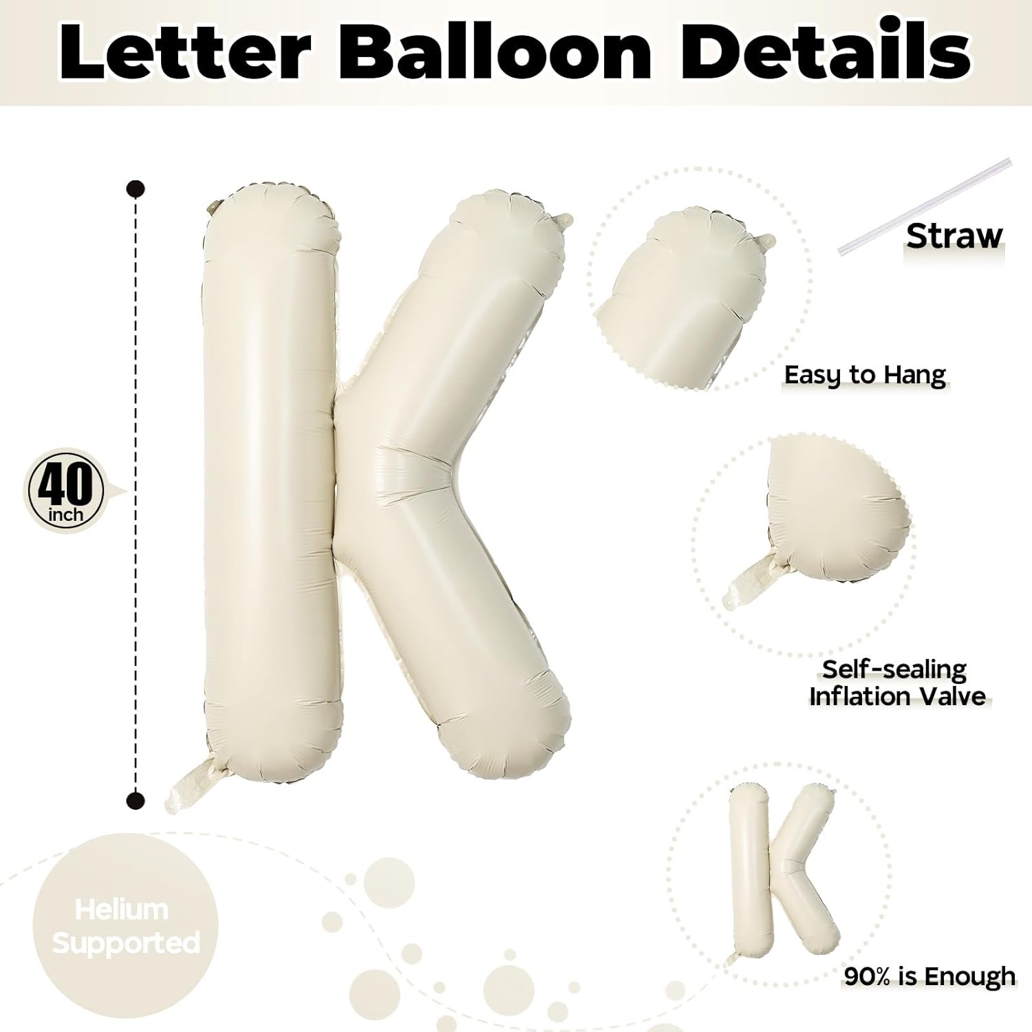 - ๐ What You Get: Our product package includes 1pcs 40 inch "K" letter foil cream white balloon and 1pcs convenient straw for inflate. You can choose any big letter balloons to combine and customize the word you want to form. Make your party more unique and meaningful.