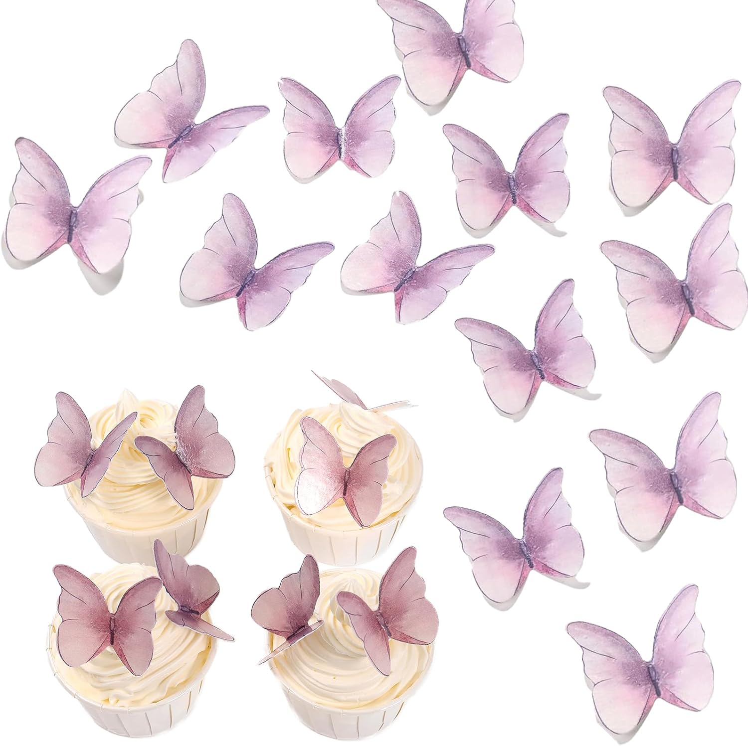 48Pcs Edible Butterflies Cake Topper Edible Butterfly Cupcake Toppers Wafer Paper Butterflies Edible Butterfly Cake Decorations for Wedding Birthday Party Cupcakes Decorating (Purple)